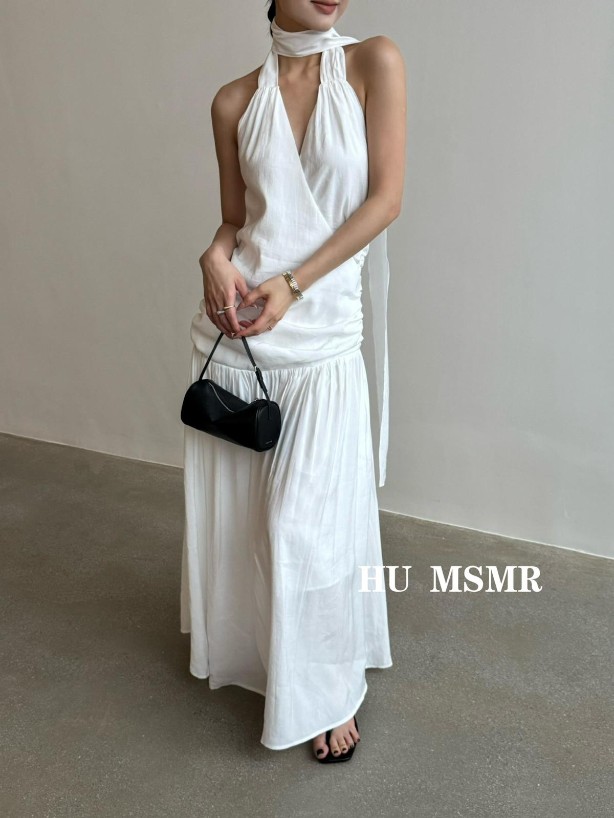 【HUMSMR】掛脖抽繩露背設計洋裝