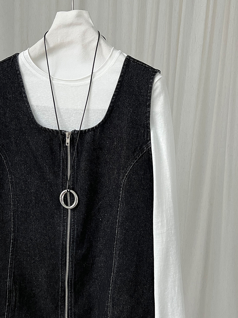 【鹿西】兩穿拉鏈外套背心裙女秋季新款牛仔疊穿減齡洋裝