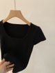 【歐瑪萊】U領短袖直角肩T恤女合身顯瘦純色甜辣妹夏季百搭上衣潮