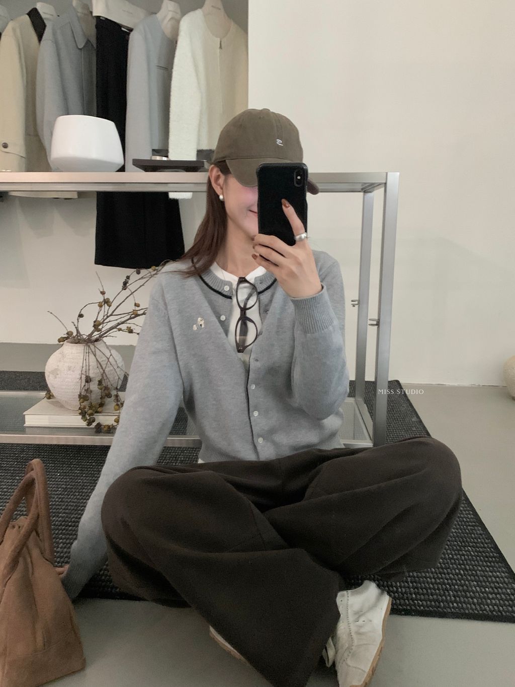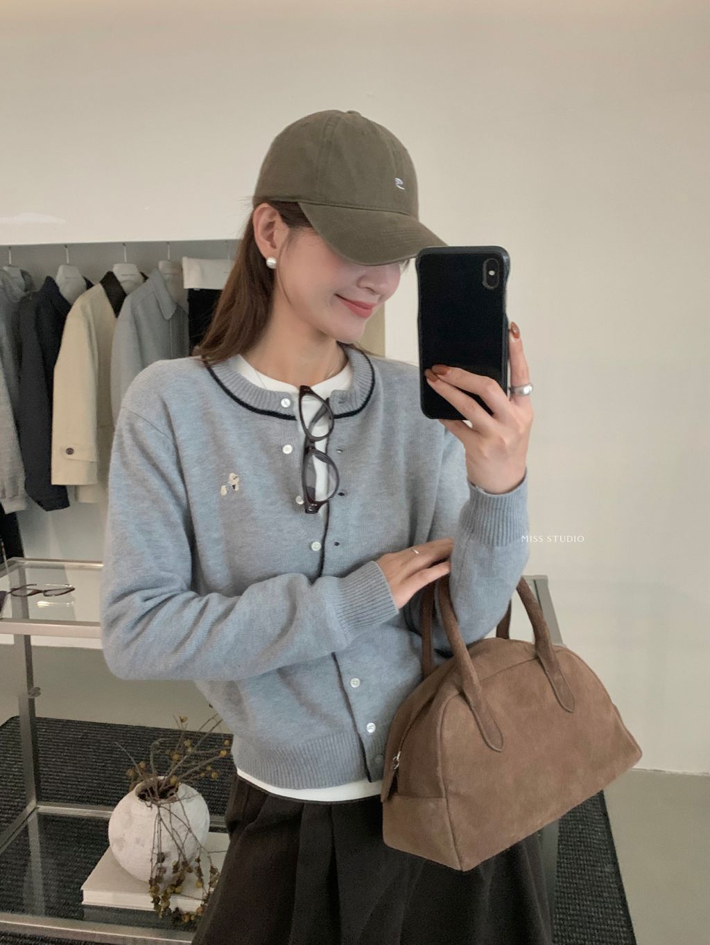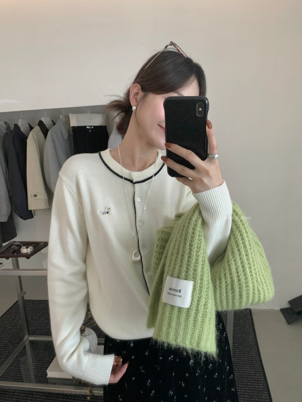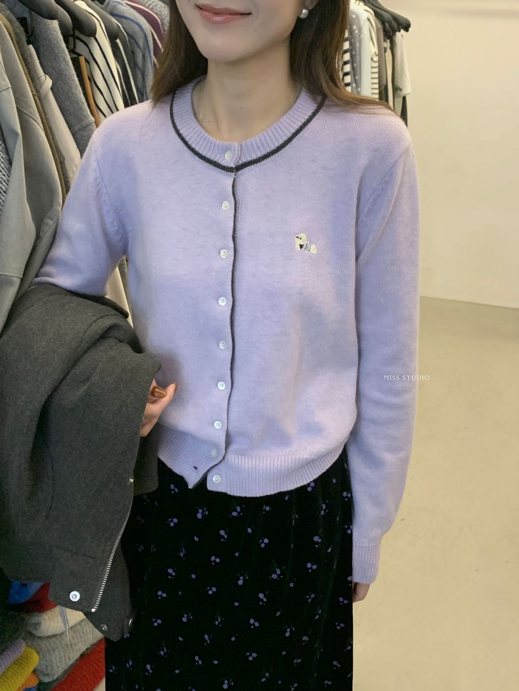 【MISS密思家】俏皮感小狗狗刺繡拼色邊外套保暖毛衣(含5%羊毛) 2279