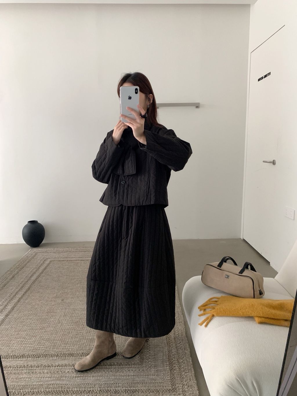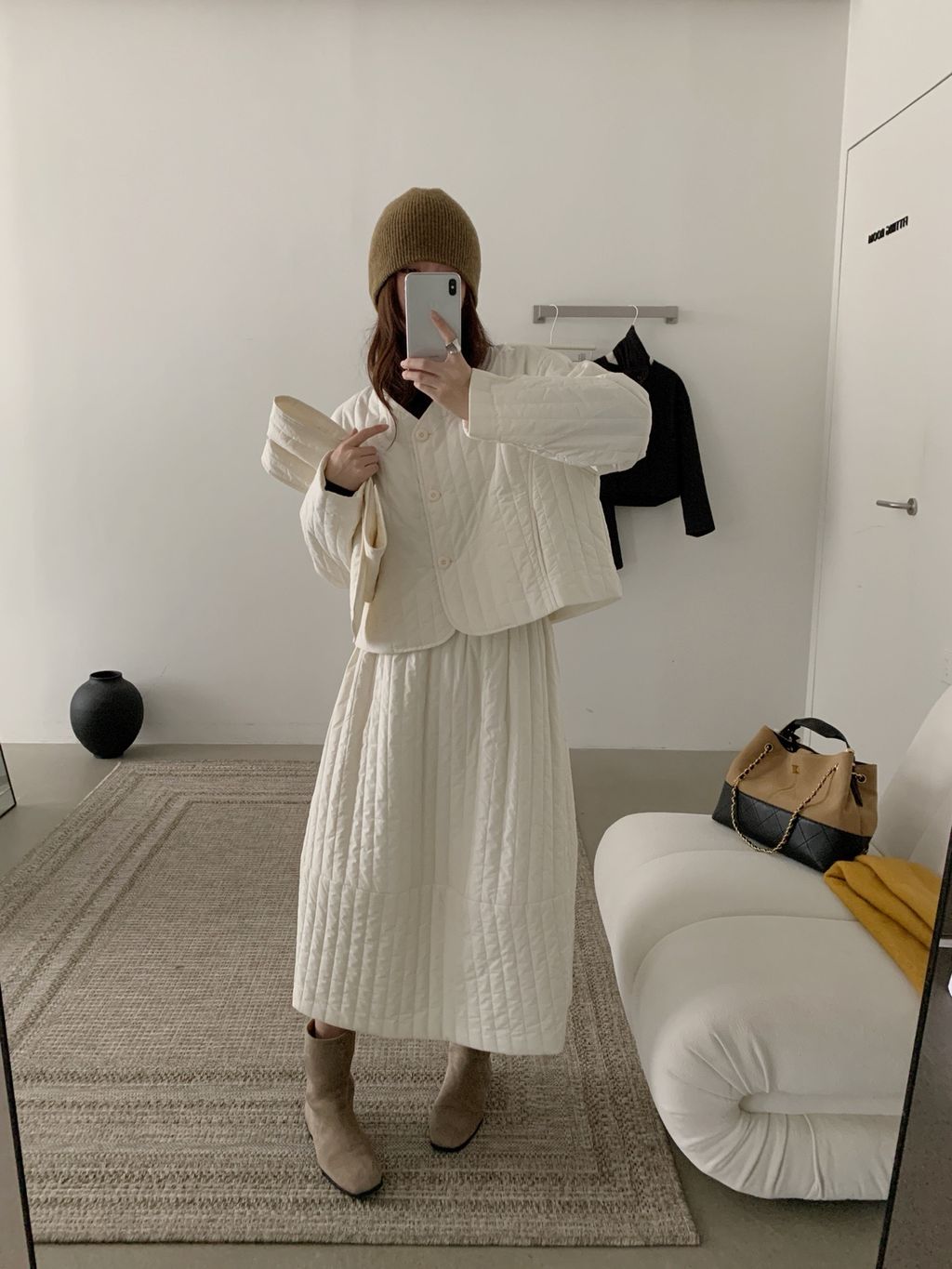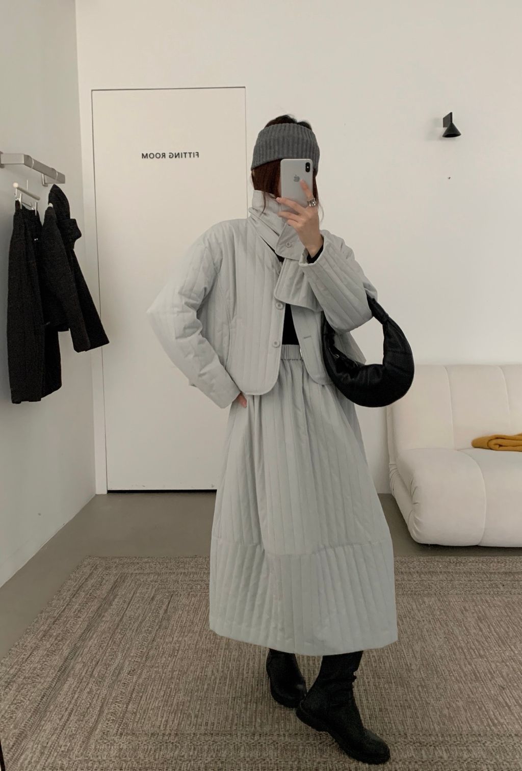 【TE】絎棉工藝乾淨簡韓保暖鋪棉外套+長裙短裙套裝(配圍巾)(暖暖呼呼又遮肉!) T4395