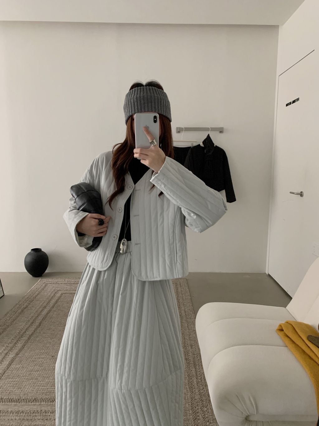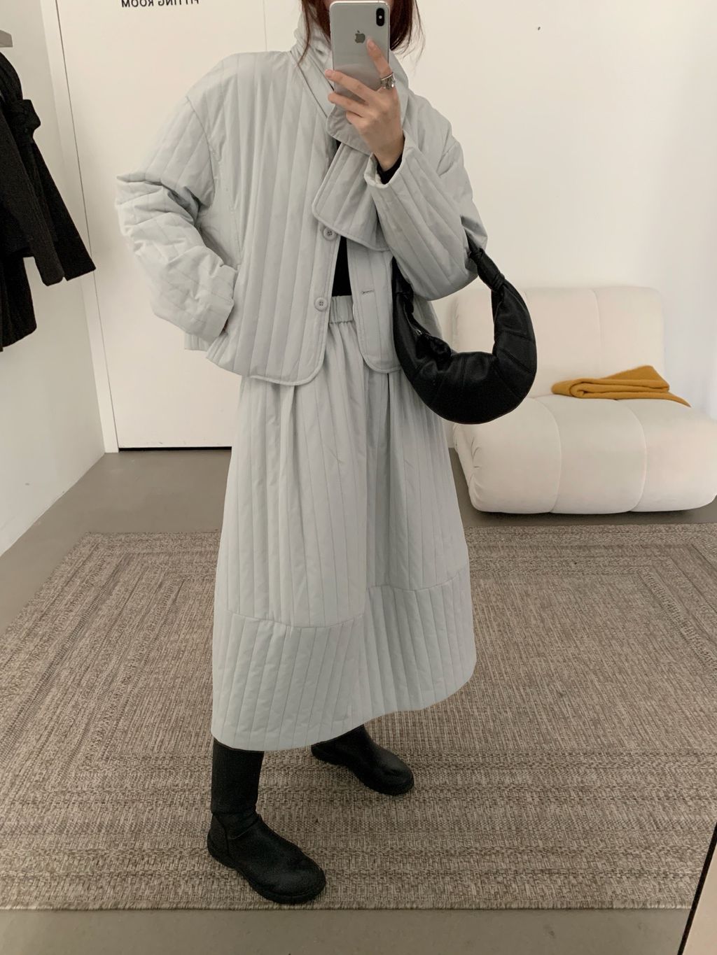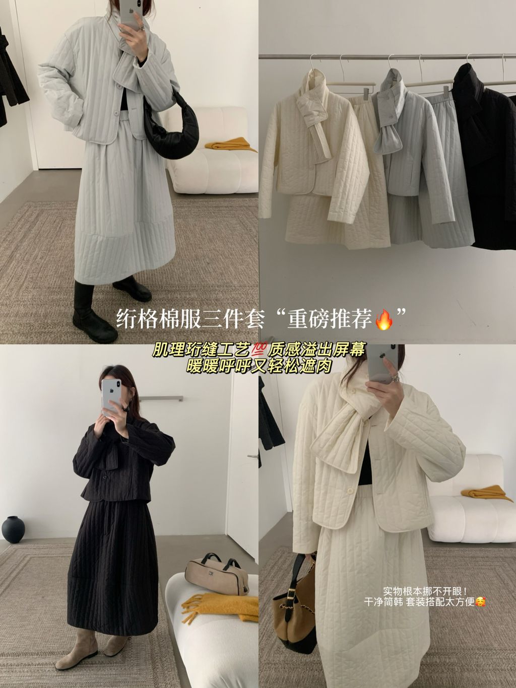 【TE】絎棉工藝乾淨簡韓保暖鋪棉外套+長裙短裙套裝(配圍巾)(暖暖呼呼又遮肉!) T4395