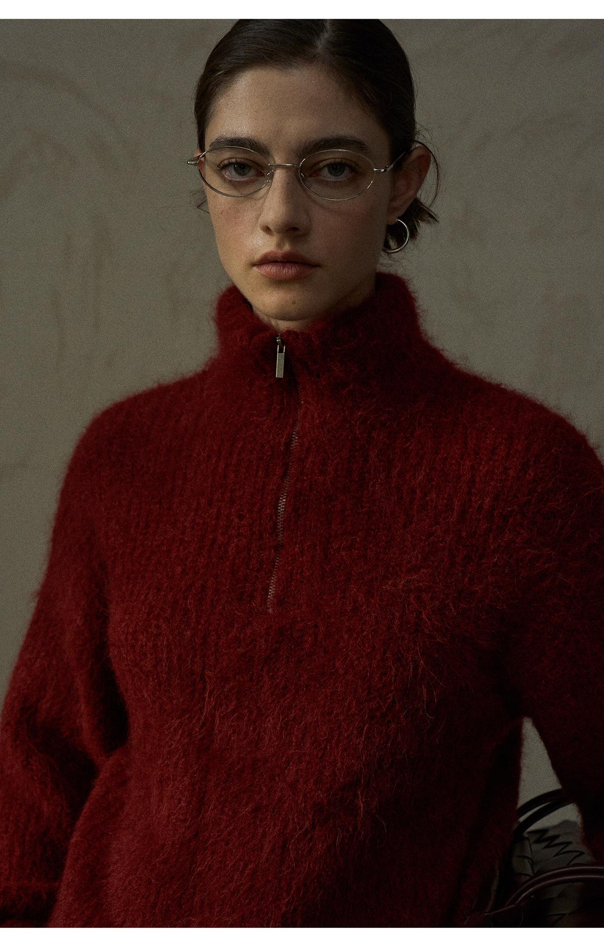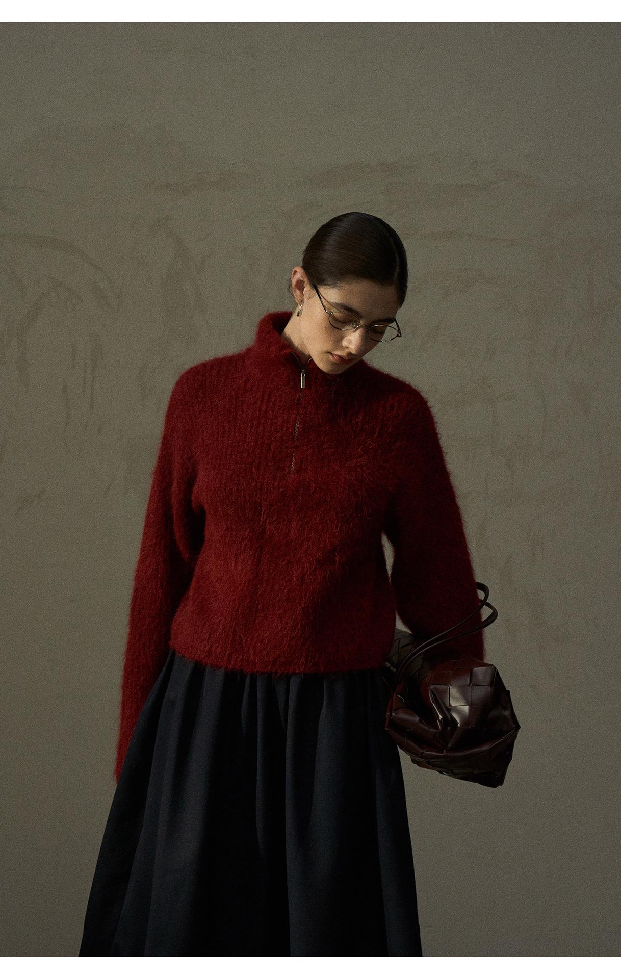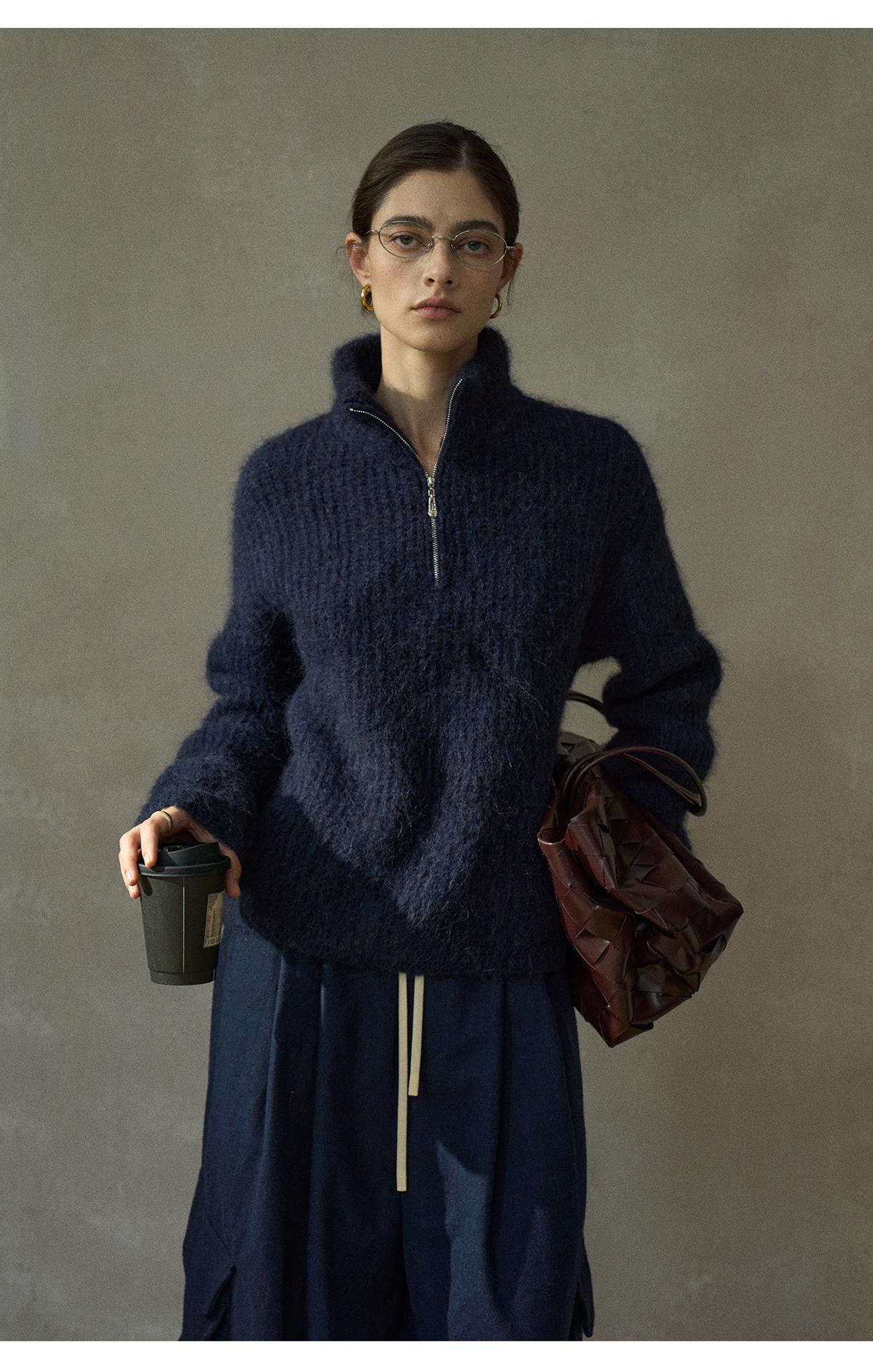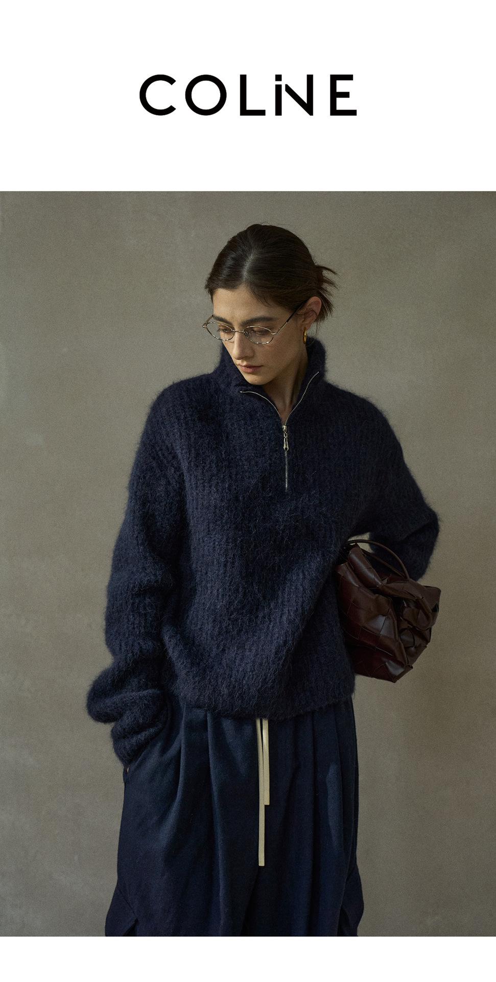 【COLNE】冬季新款細膩軟糯羊駝毛半拉鏈高領針織衫毛衣女 C5503