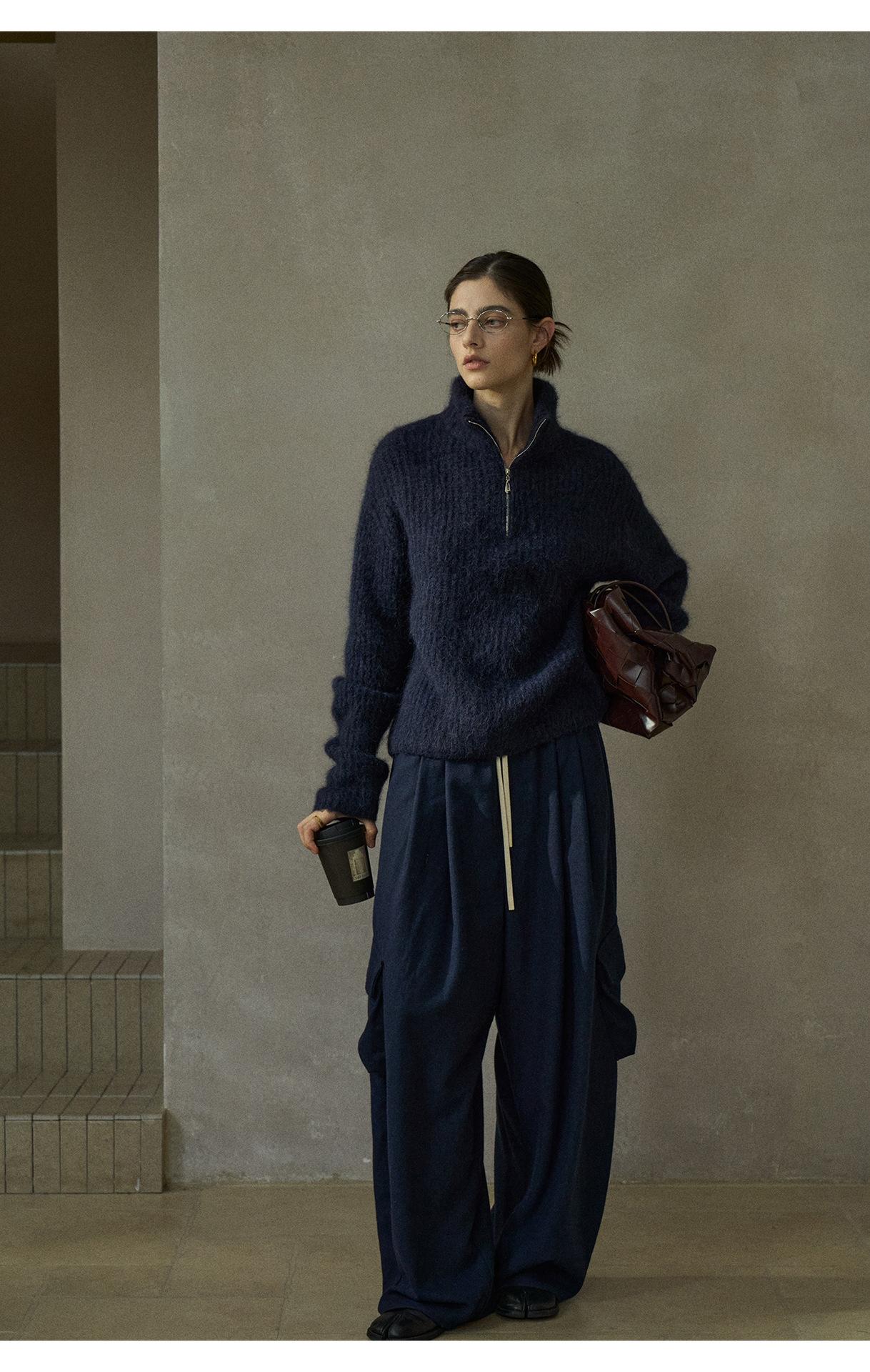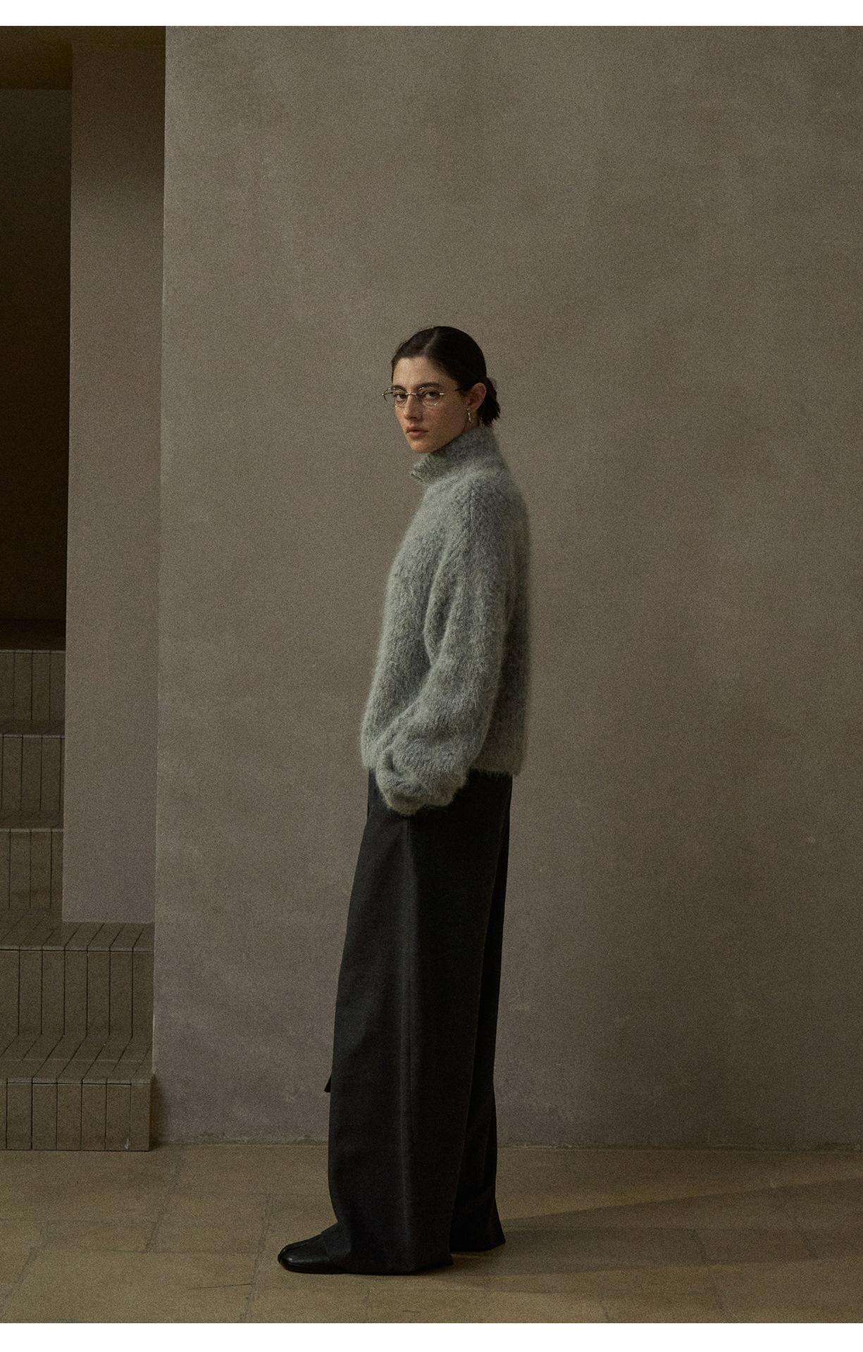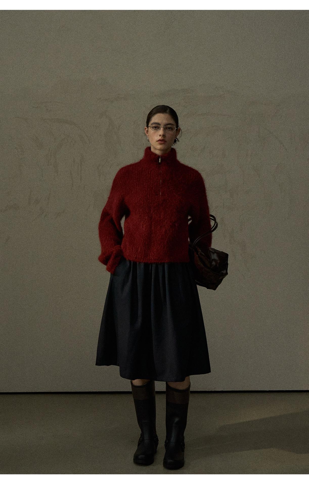 【COLNE】冬季新款細膩軟糯羊駝毛半拉鏈高領針織衫毛衣女 C5503