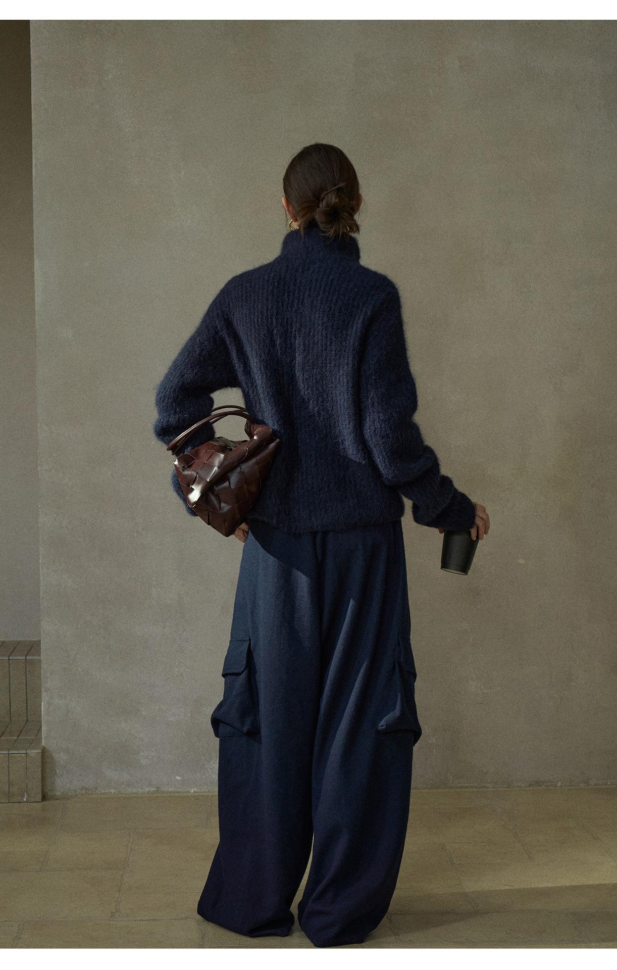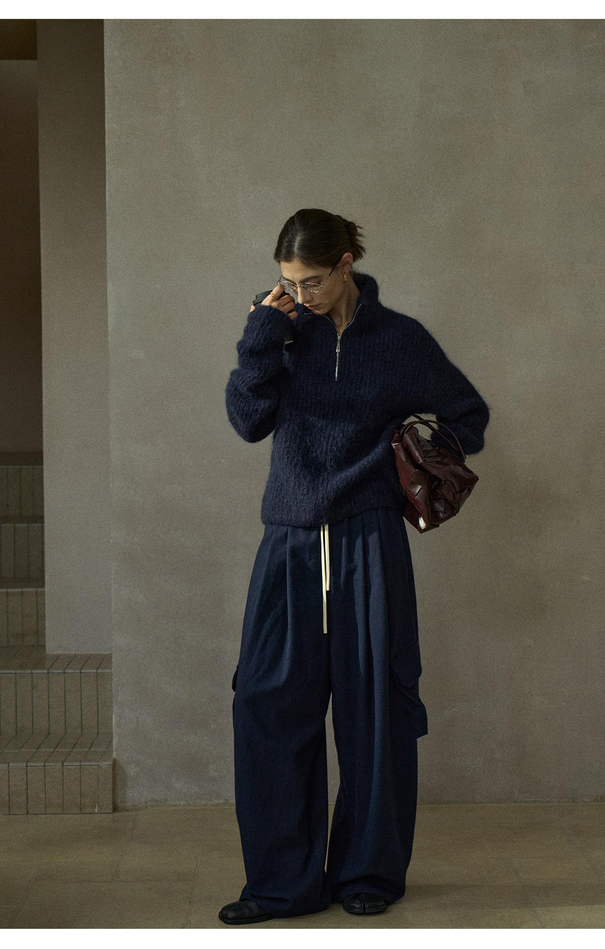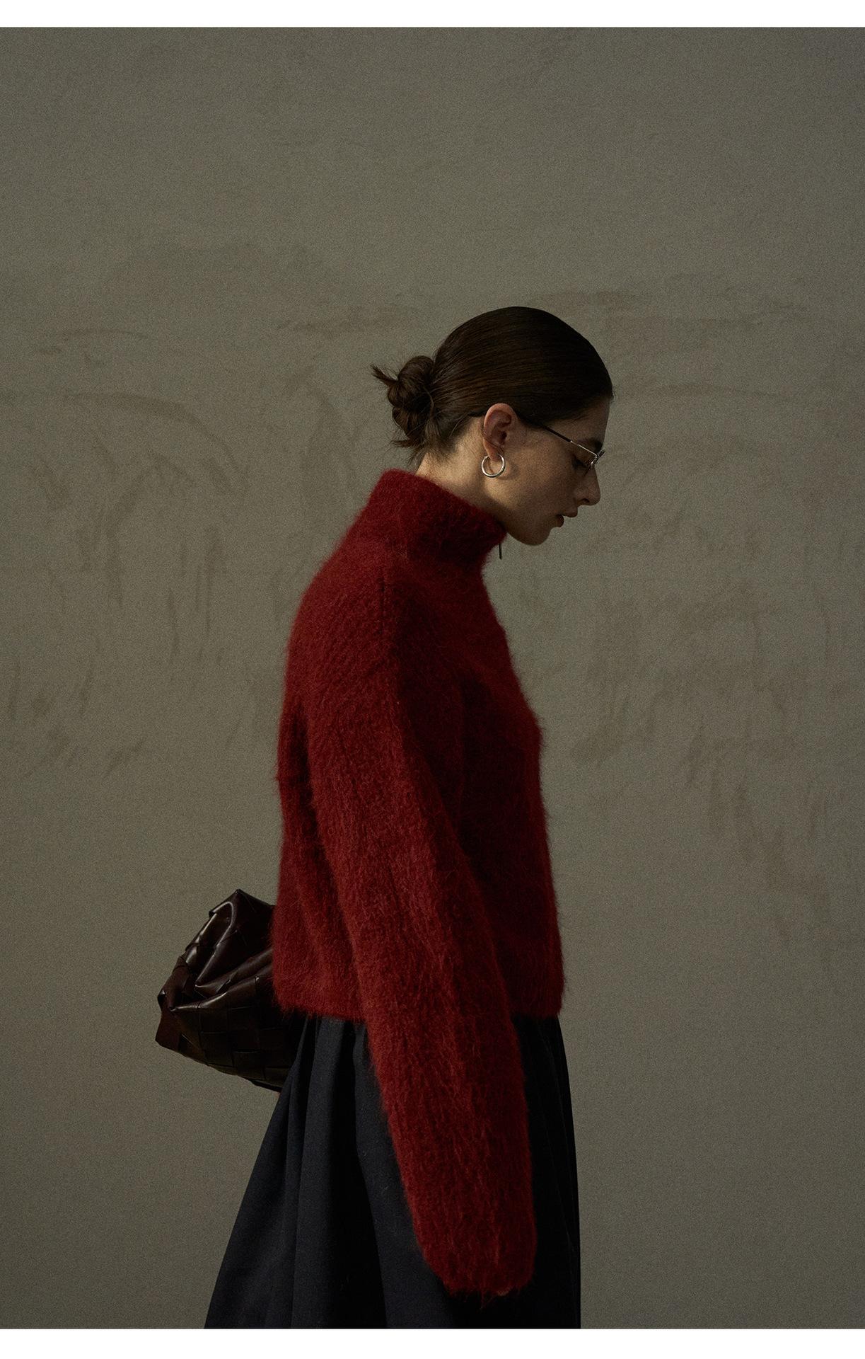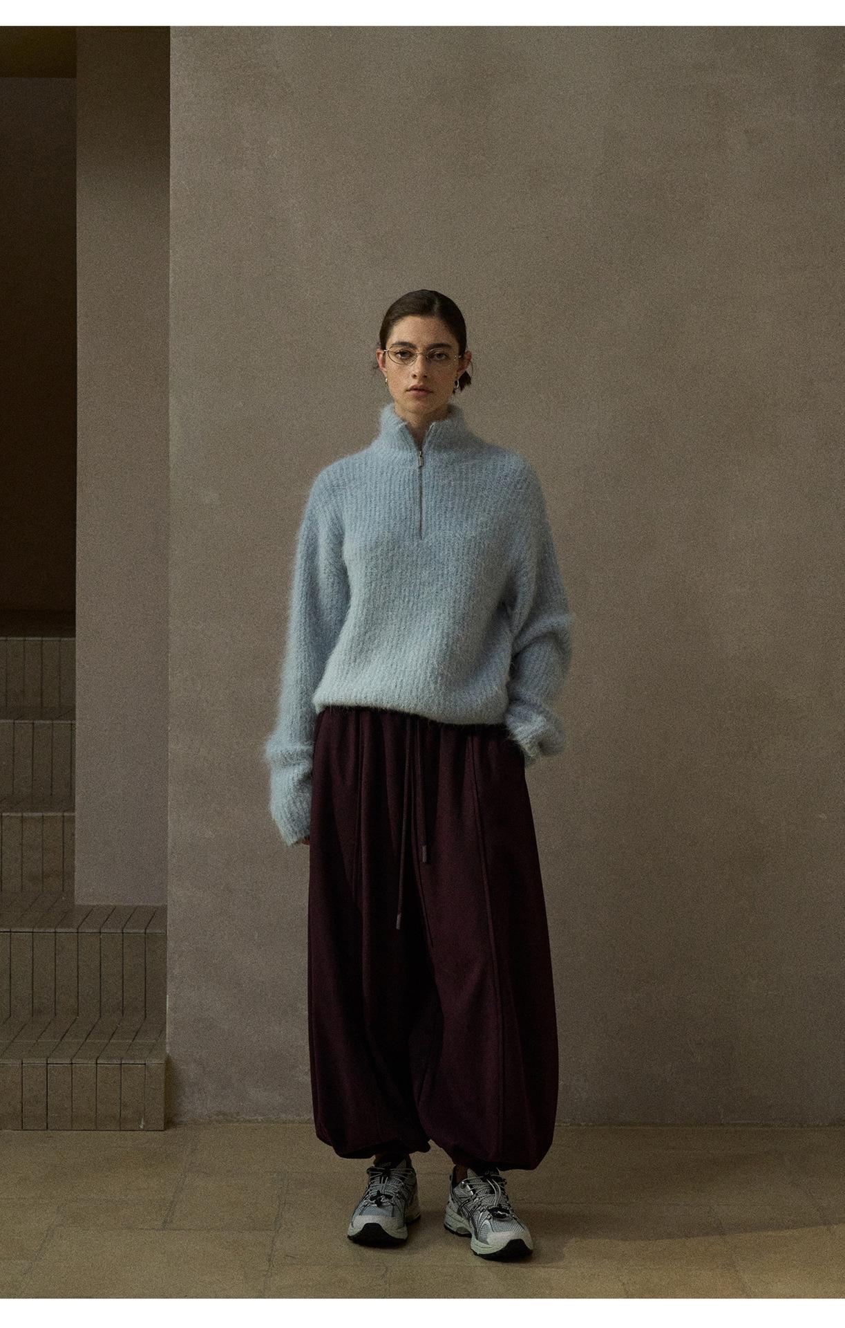【COLNE】冬季新款細膩軟糯羊駝毛半拉鏈高領針織衫毛衣女 C5503