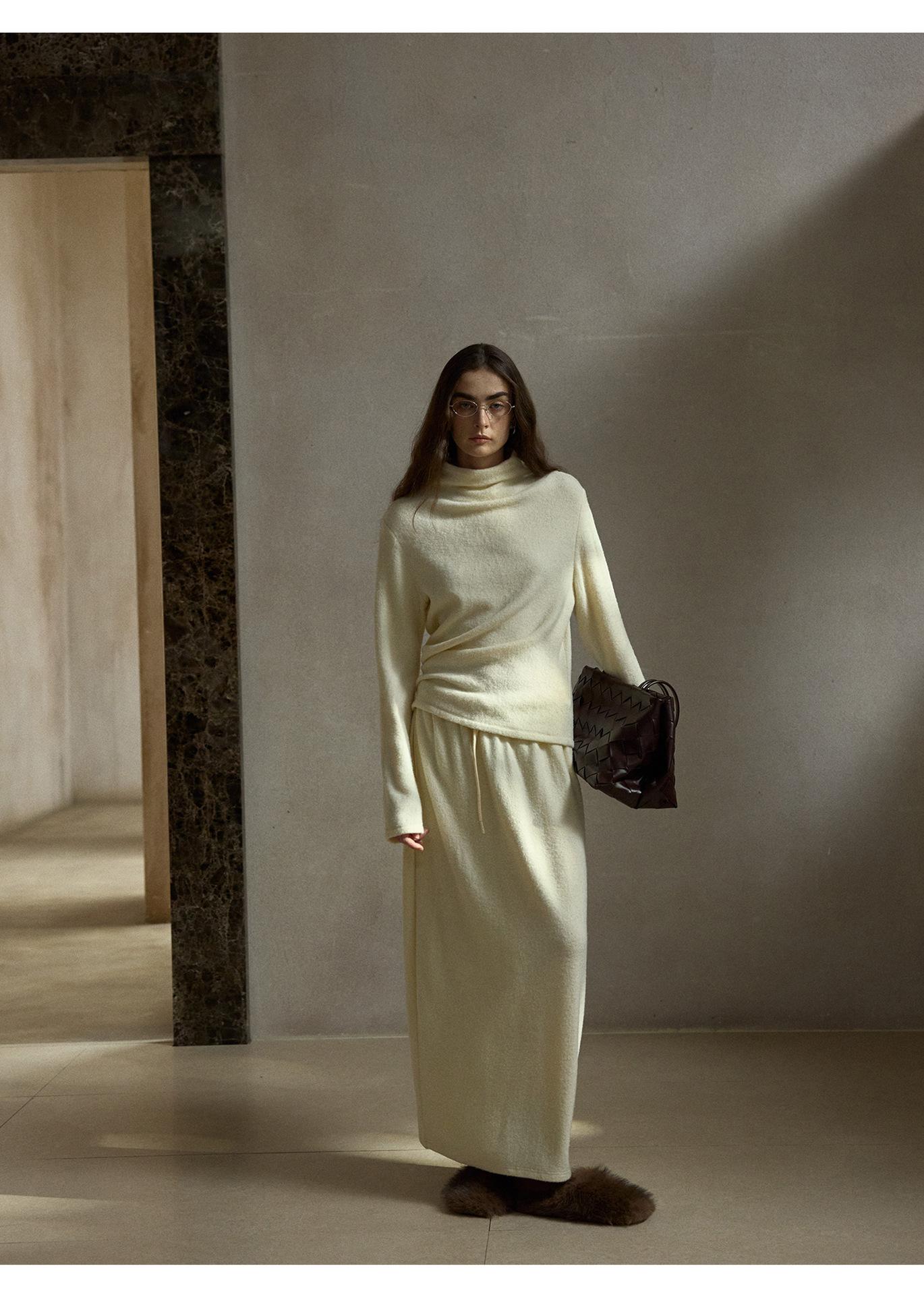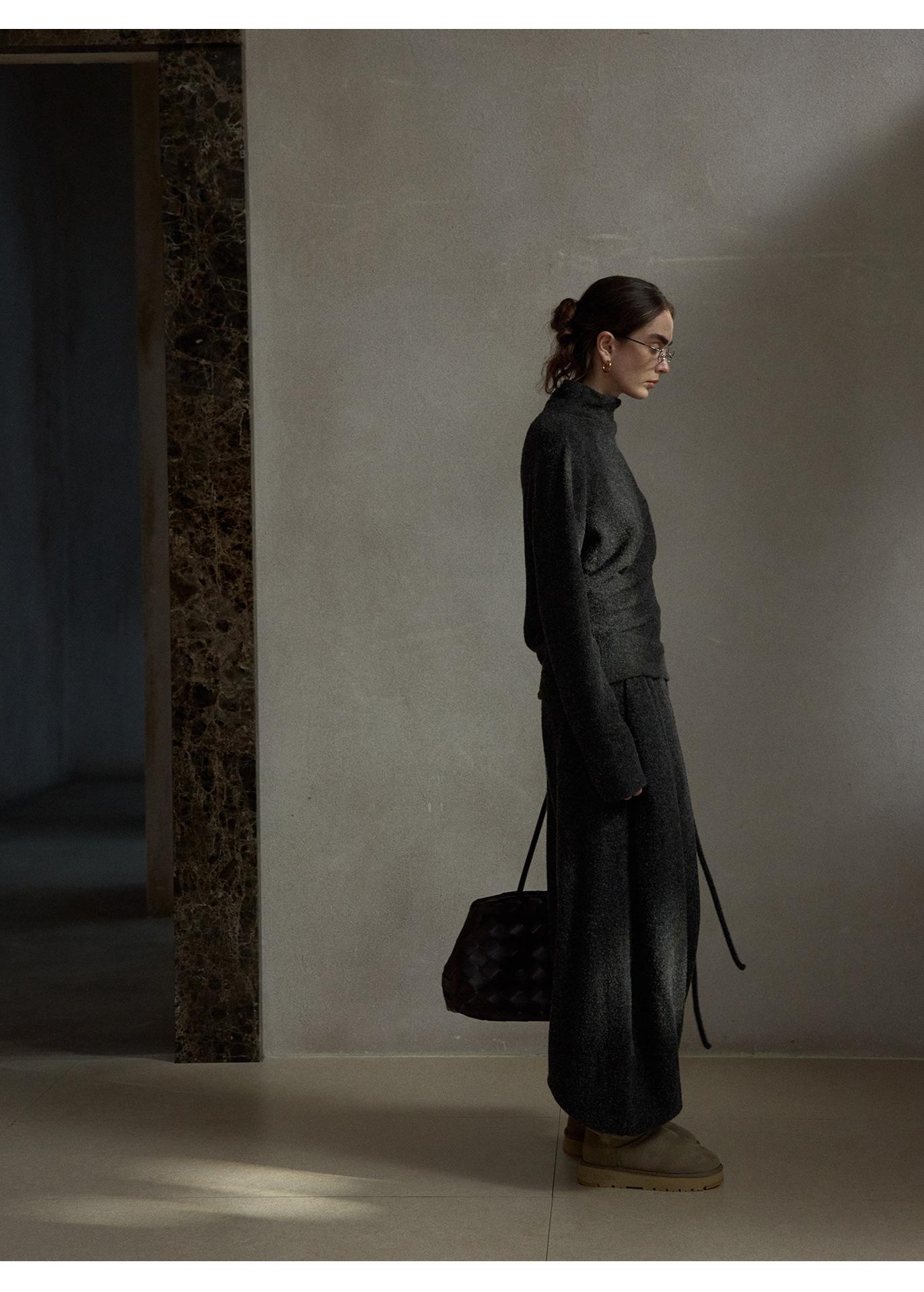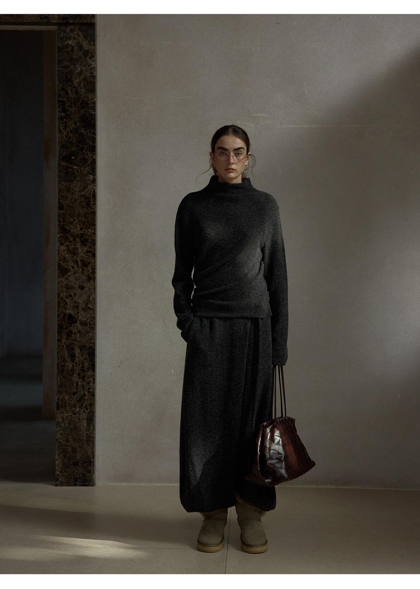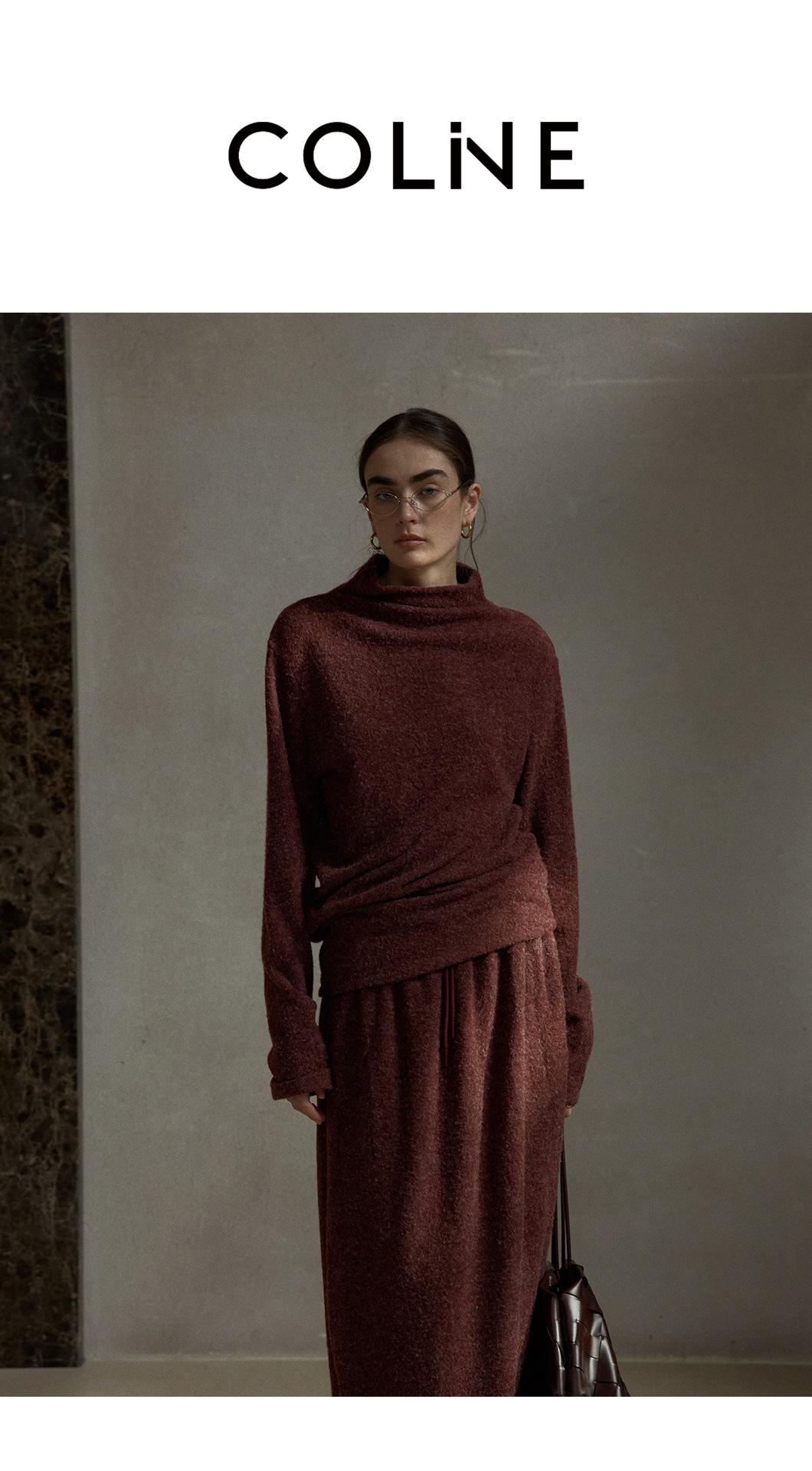 【COLNE】早春新款設計感圈圈絨高領不規則斜擺鬆弛感上衣