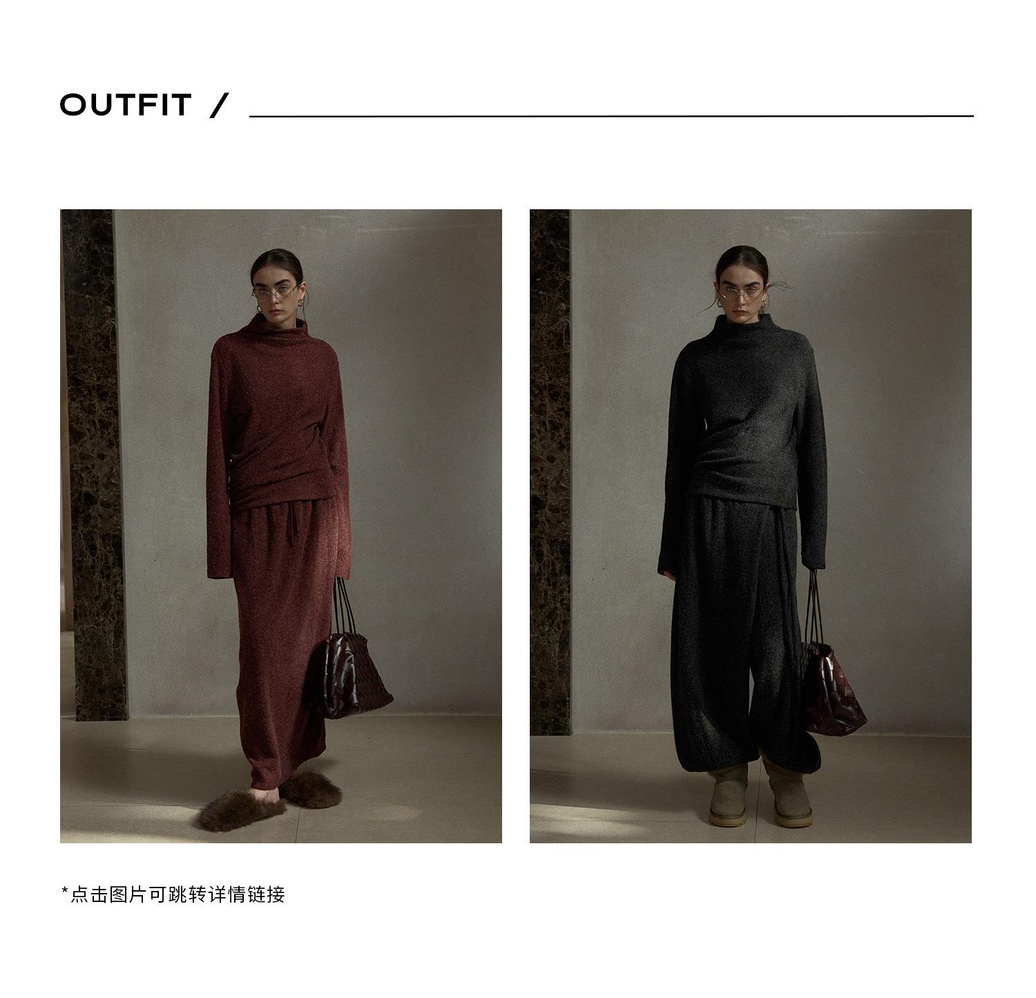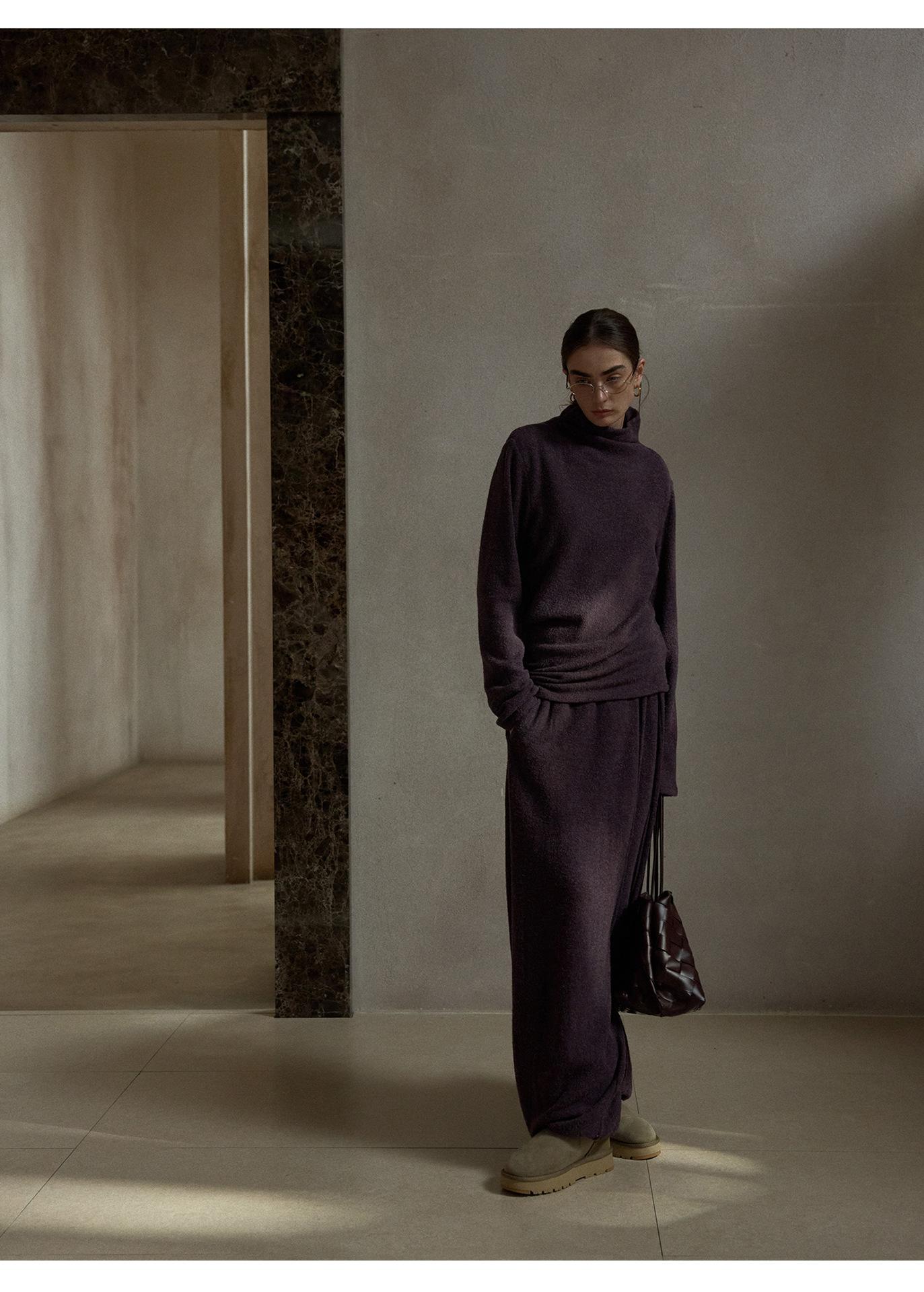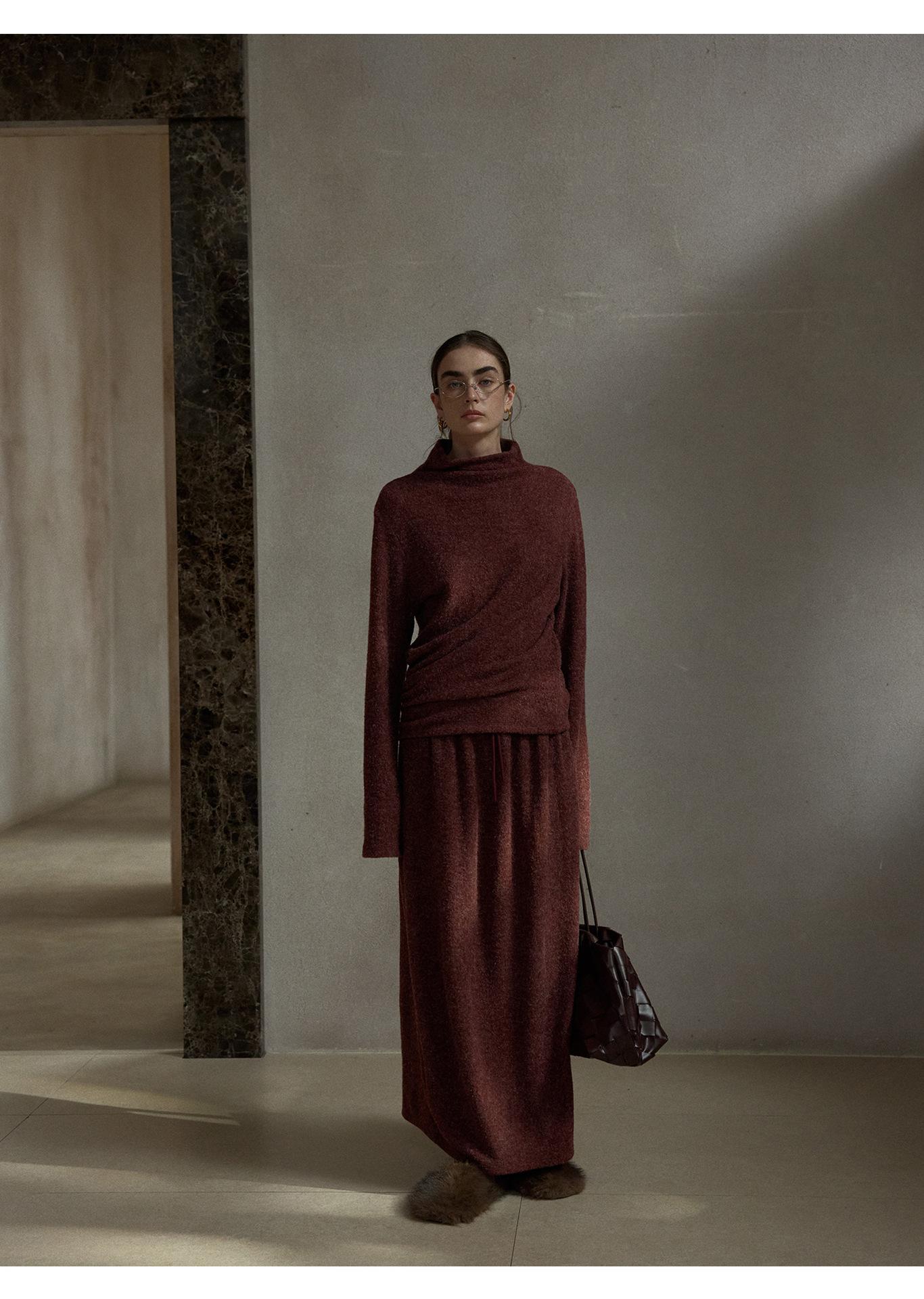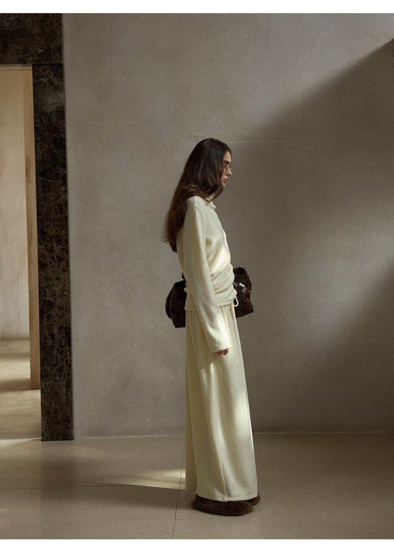 【COLNE】早春新款設計感圈圈絨高領不規則斜擺鬆弛感上衣