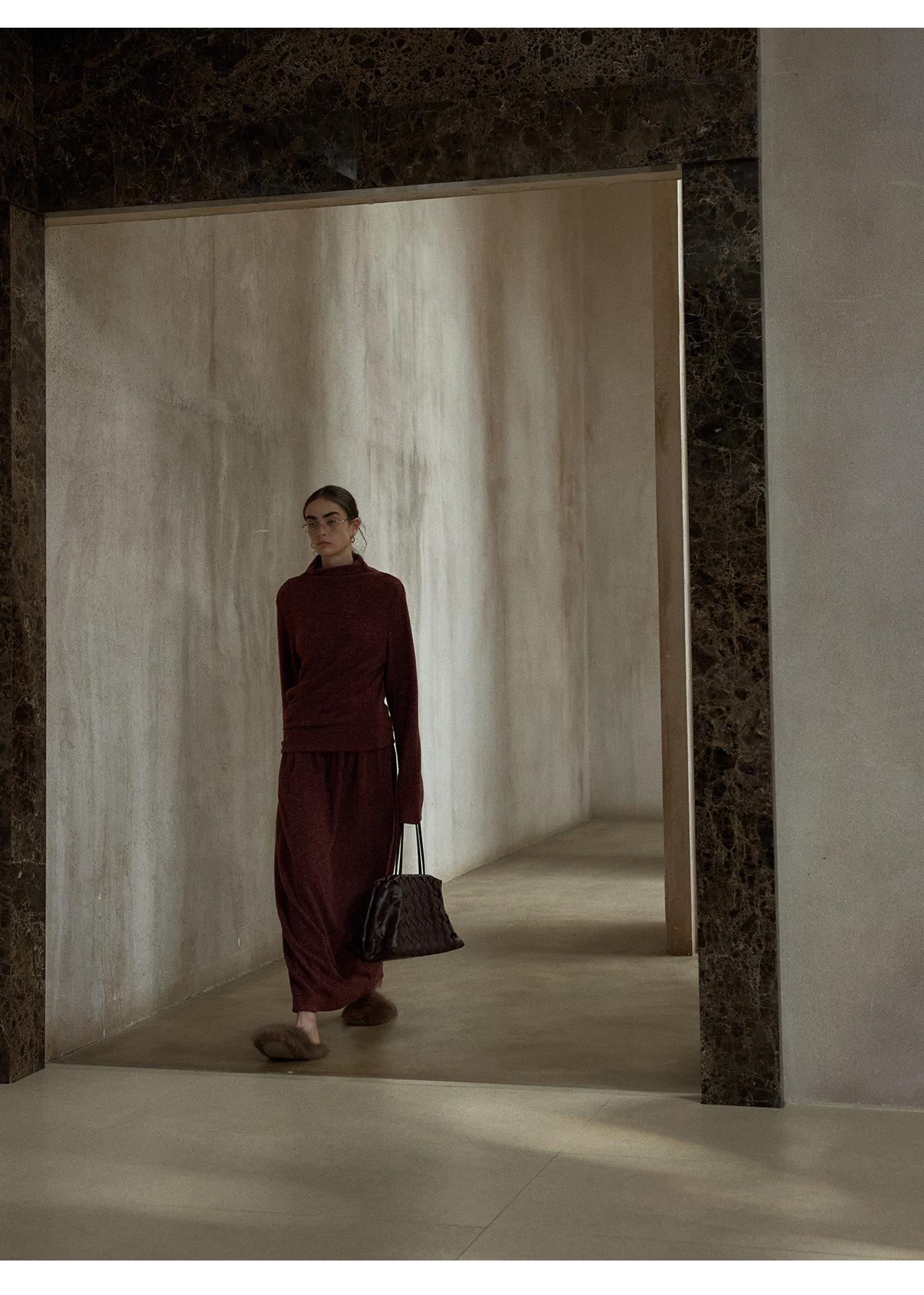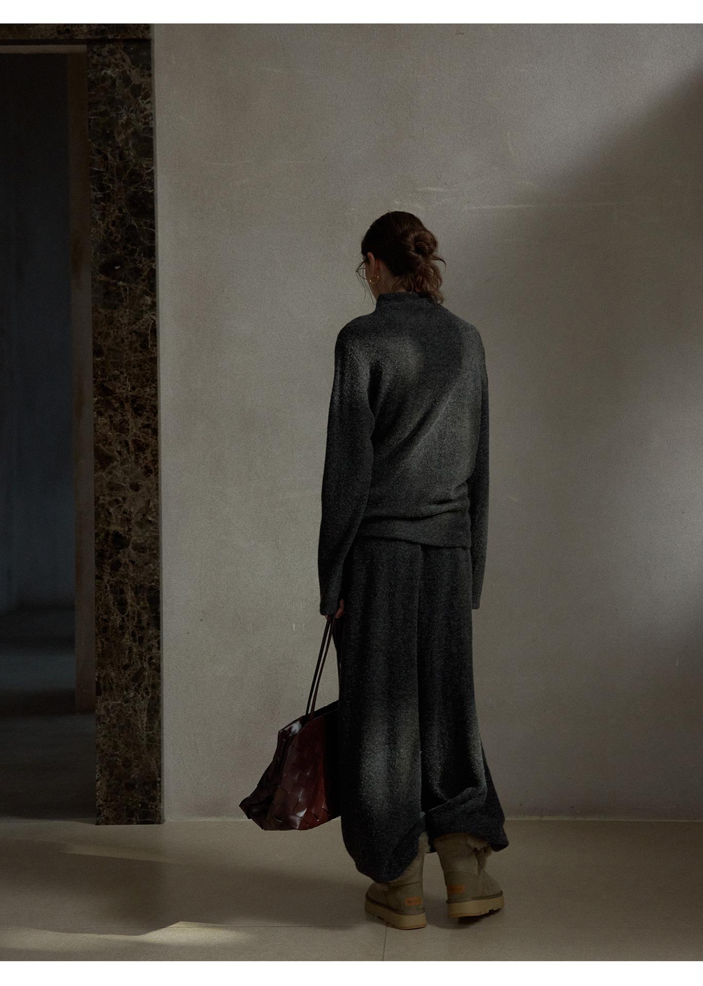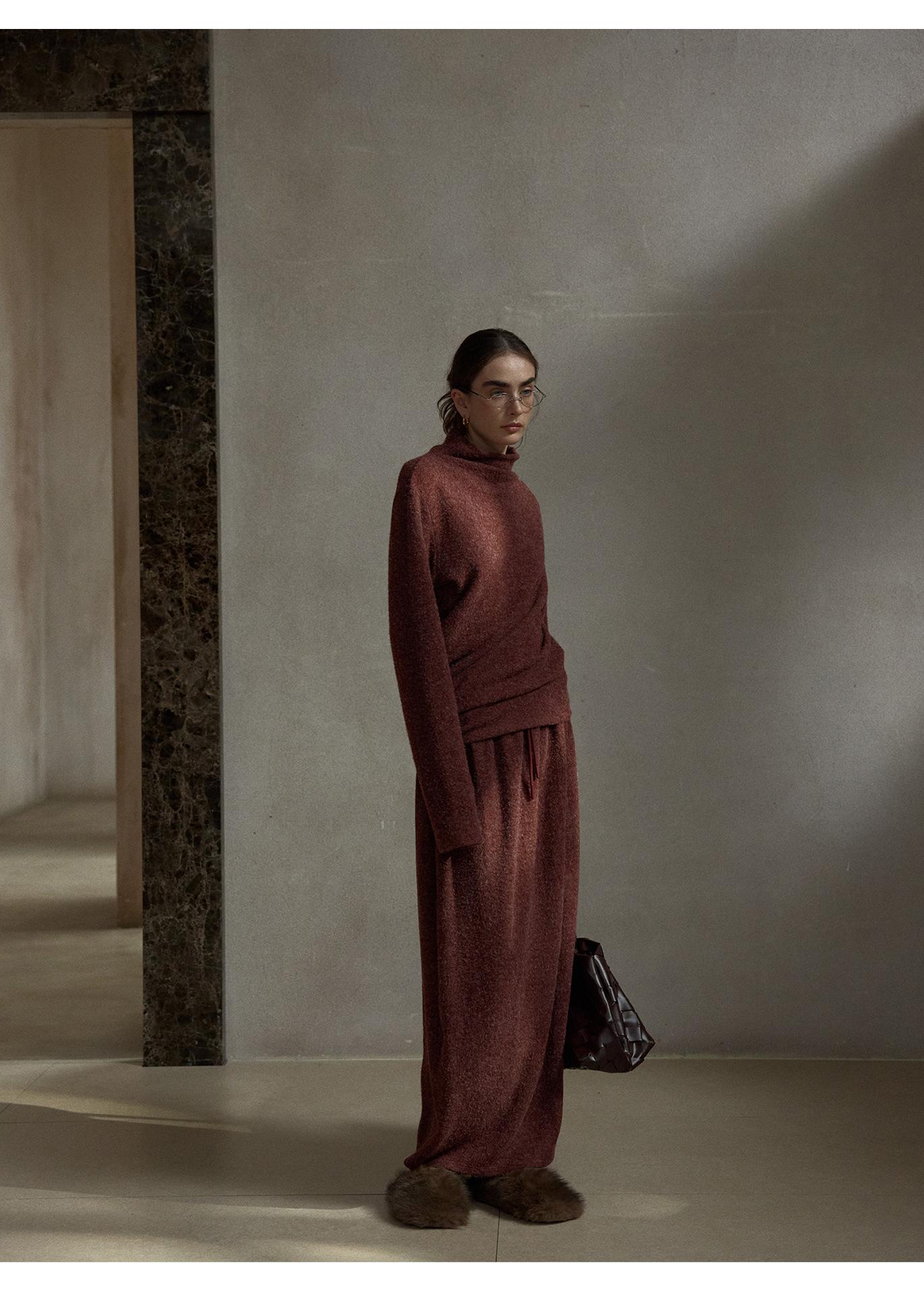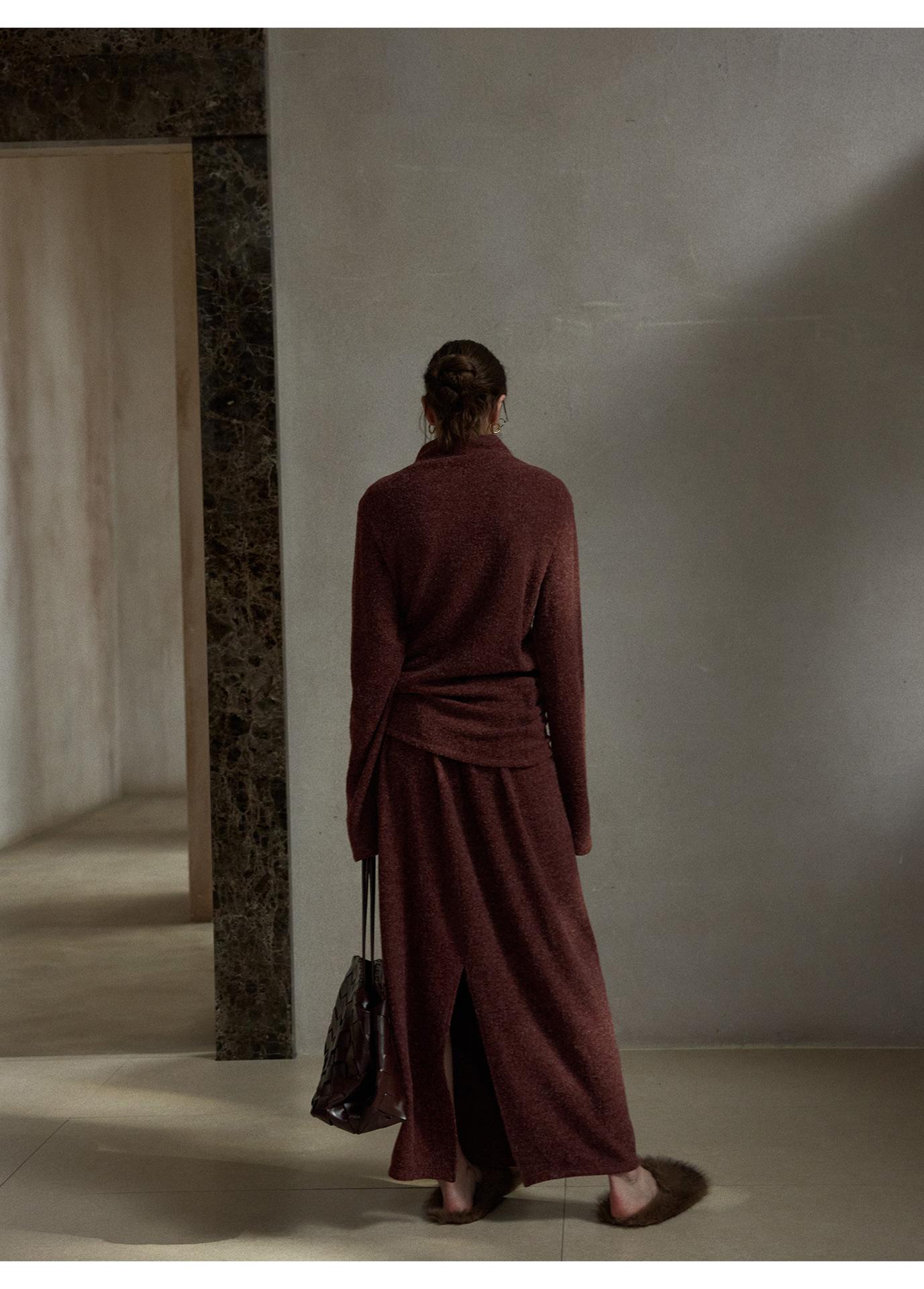 【COLNE】早春新款設計感圈圈絨高領不規則斜擺鬆弛感上衣