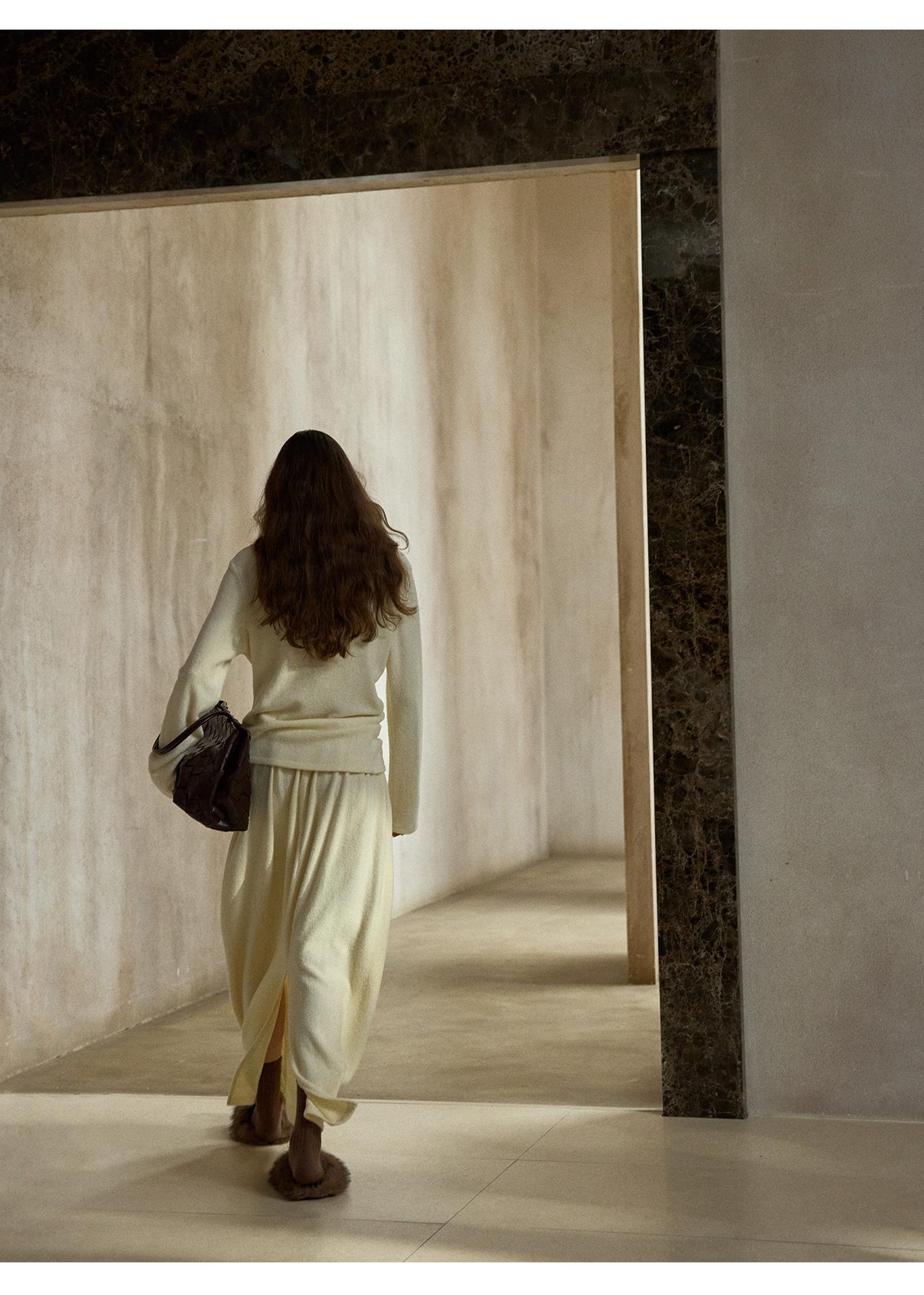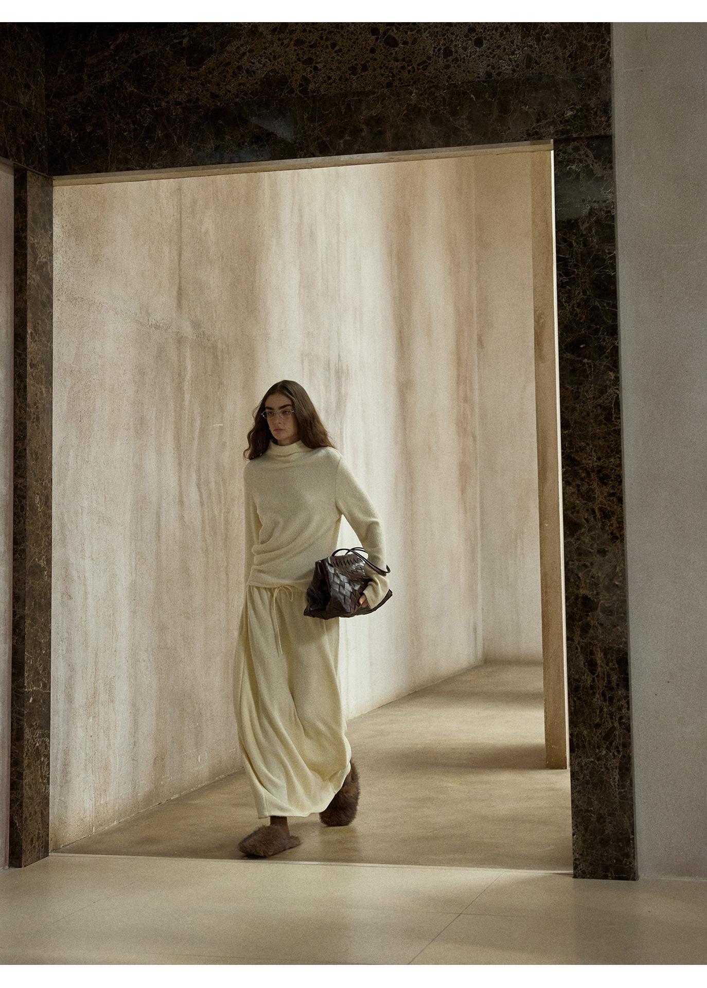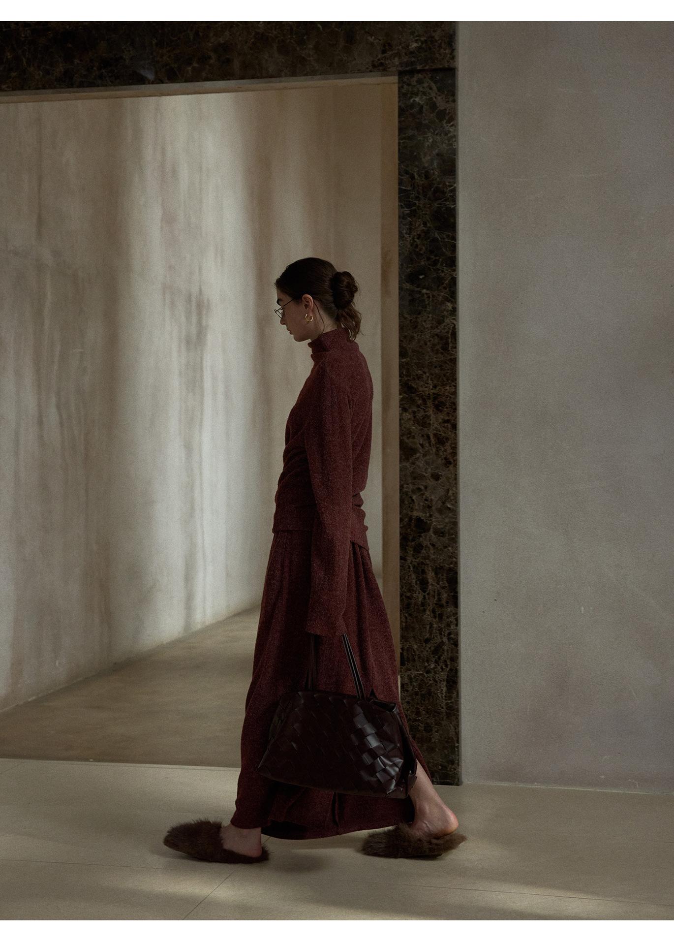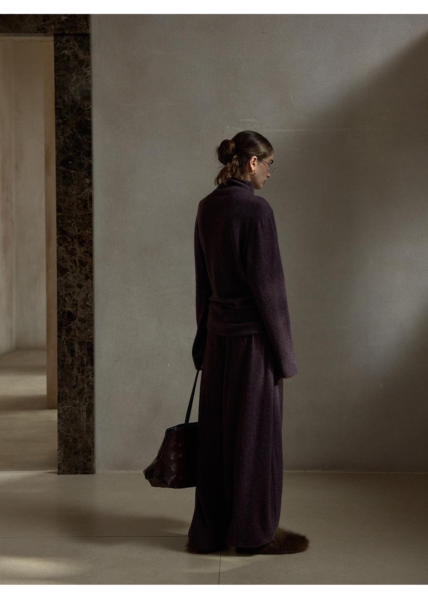 【COLNE】早春新款設計感圈圈絨高領不規則斜擺鬆弛感上衣