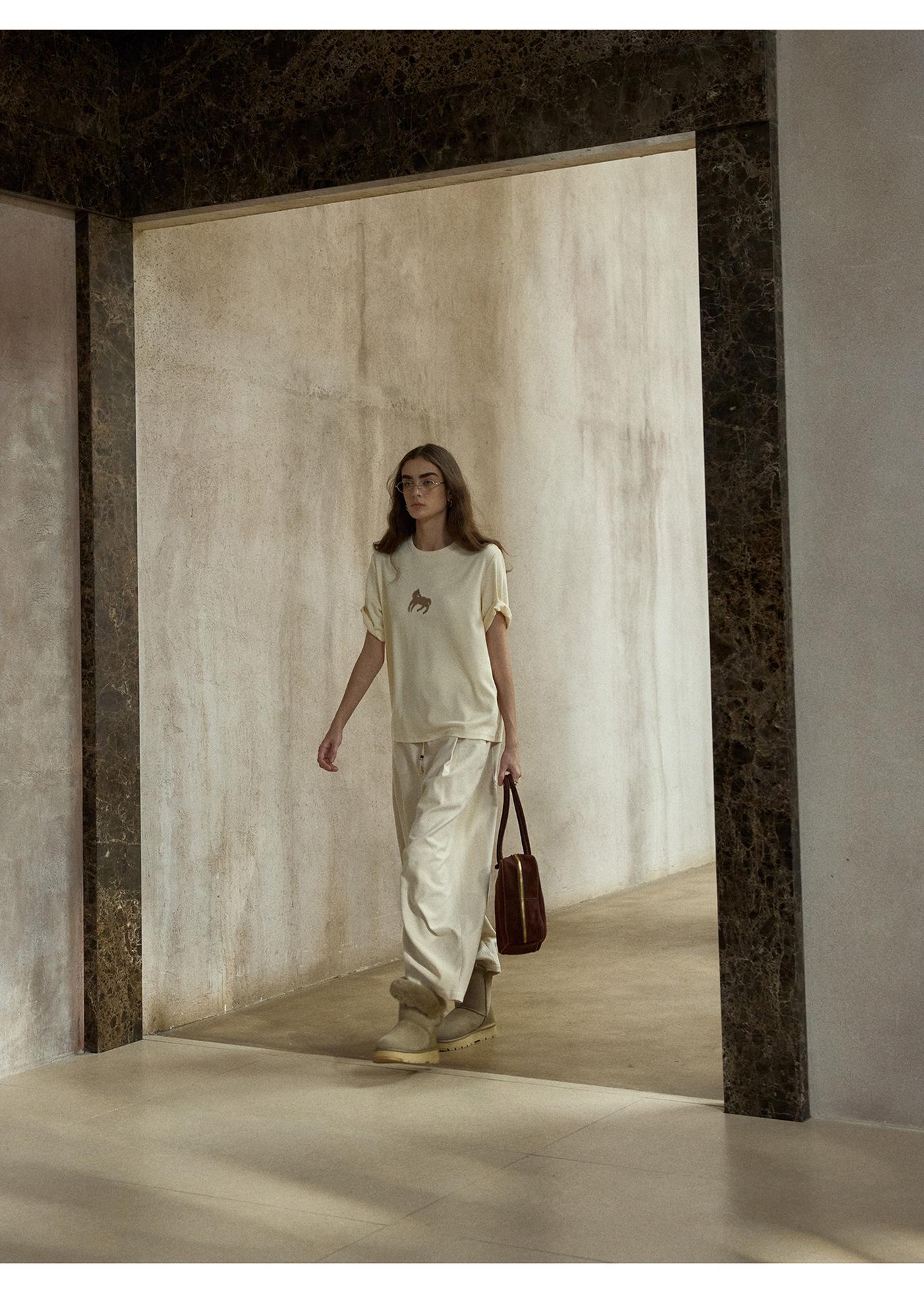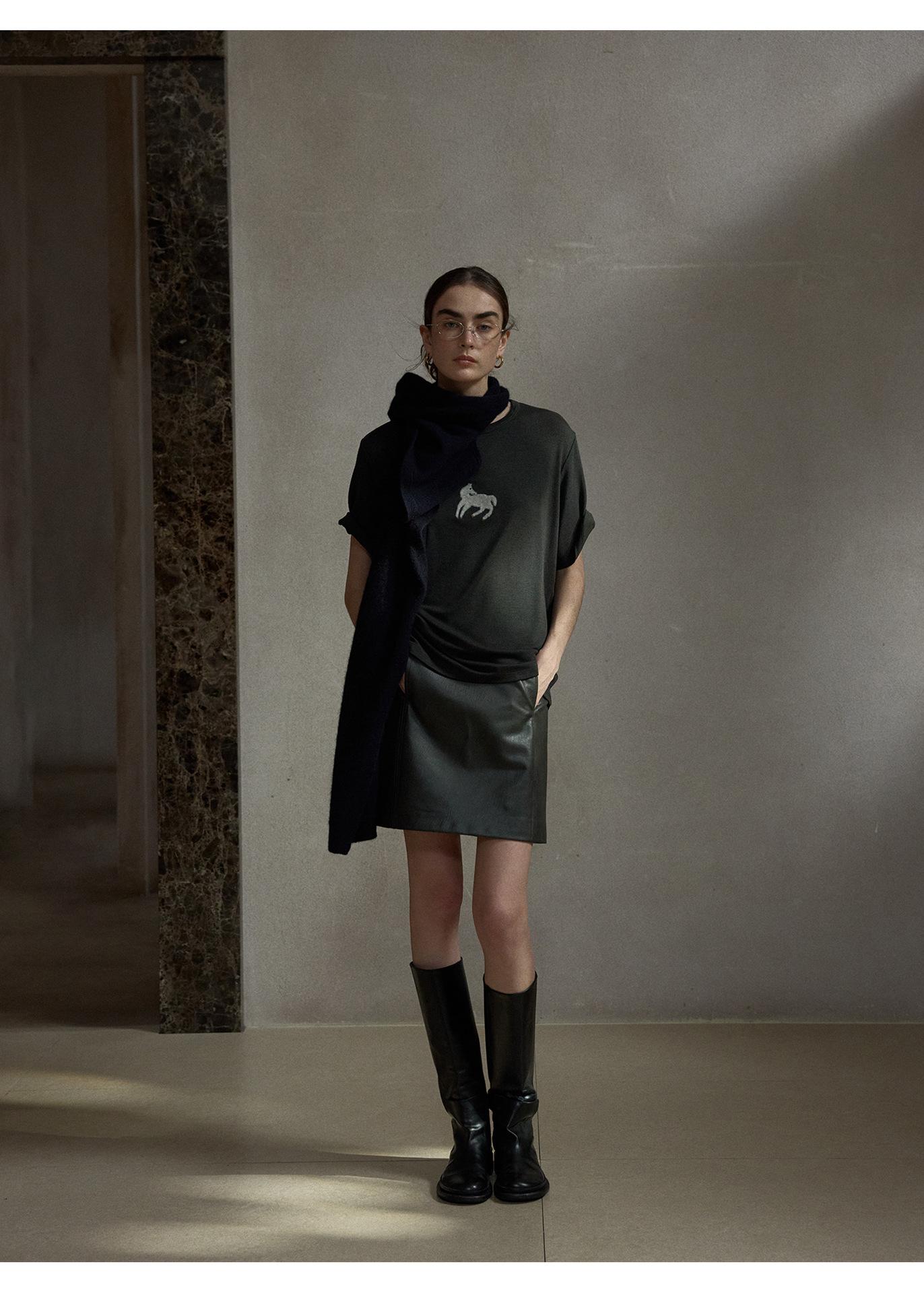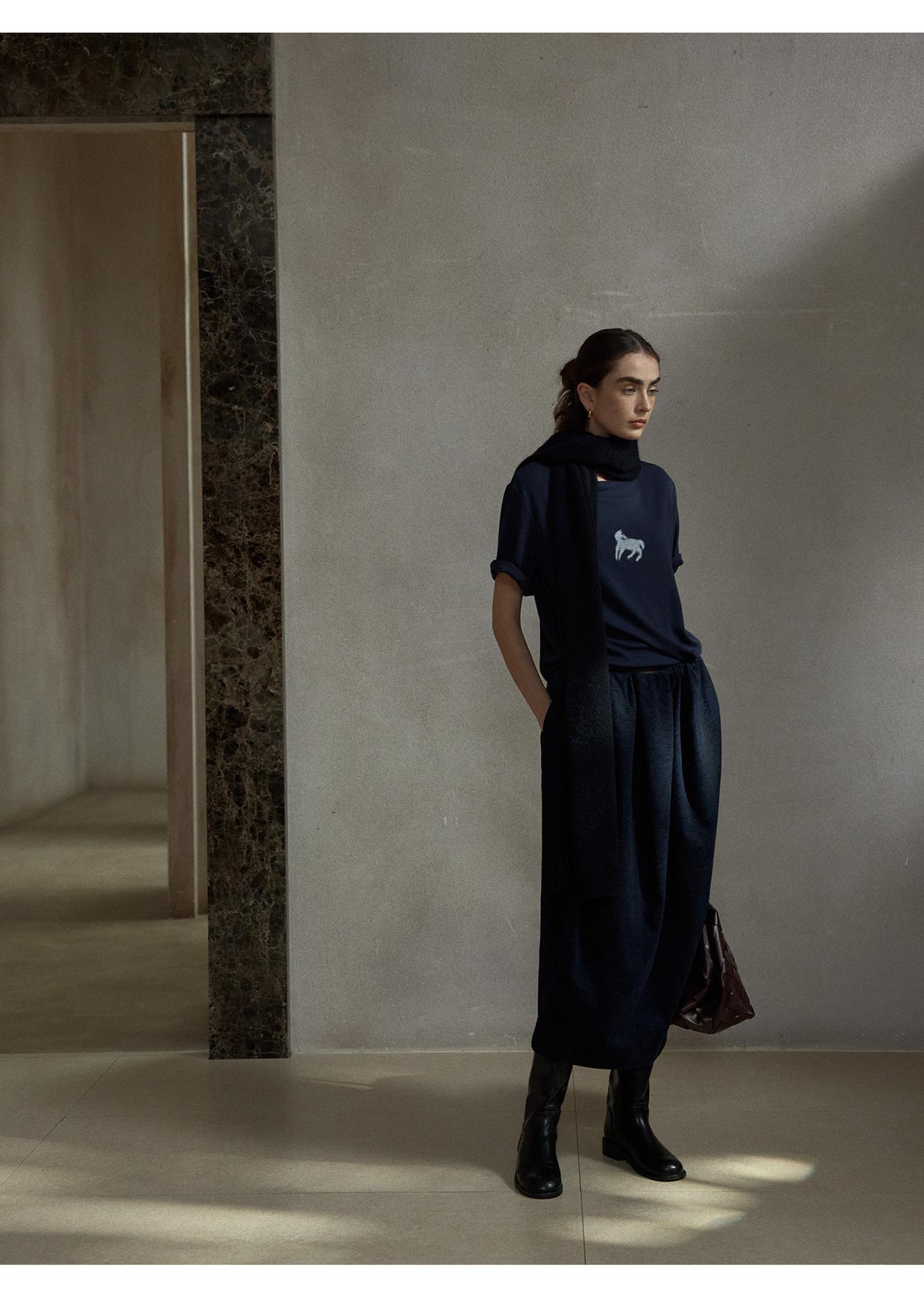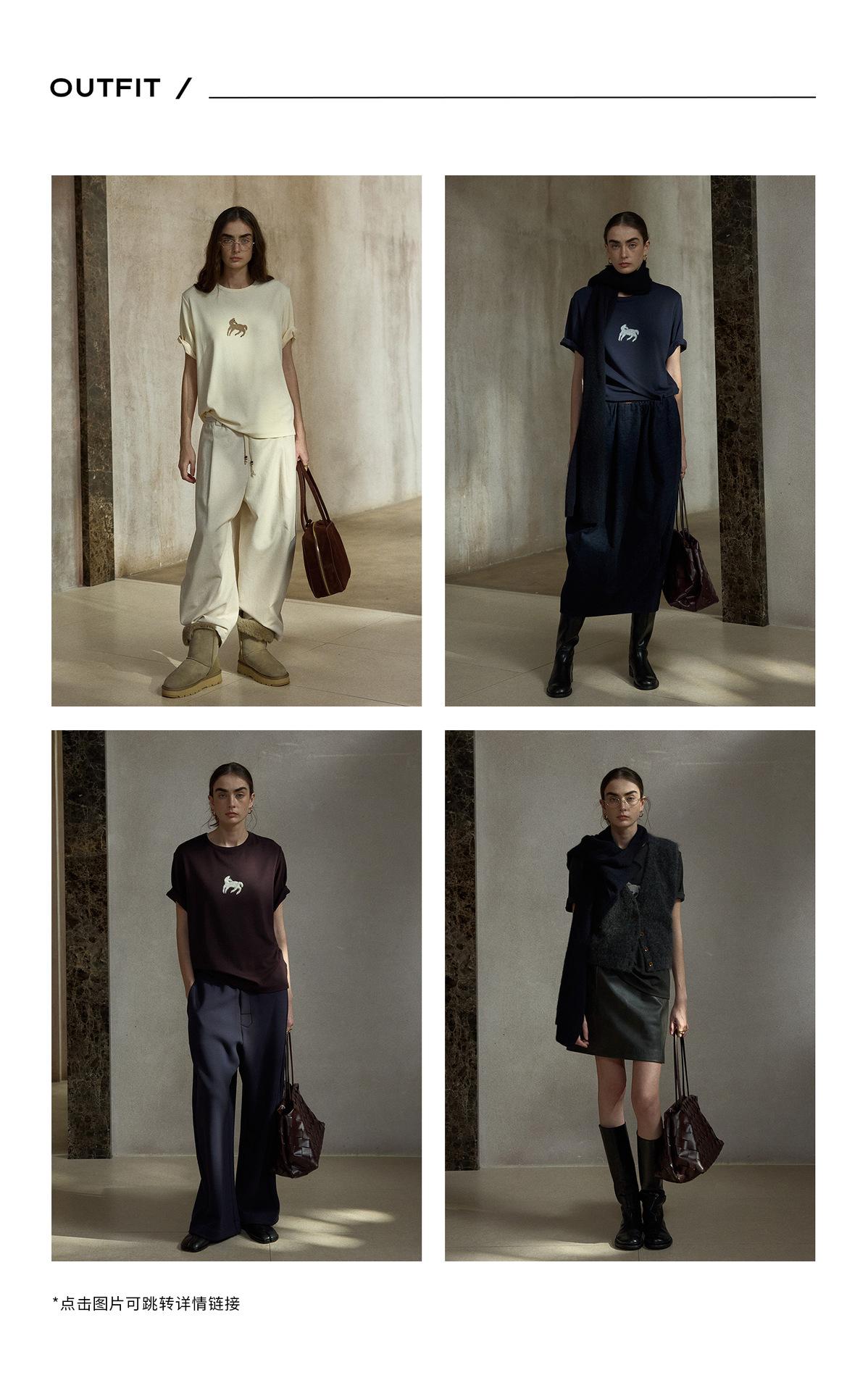 【COLNE】早春新款設計感小馬刺繡羊毛莫代爾毛氈繡T恤女
