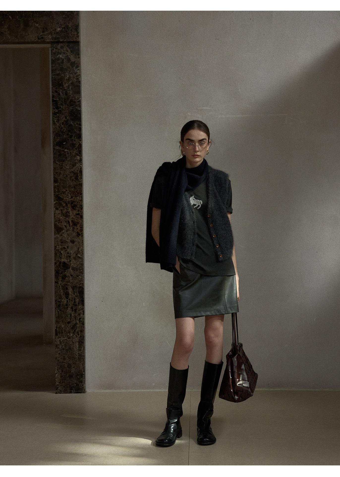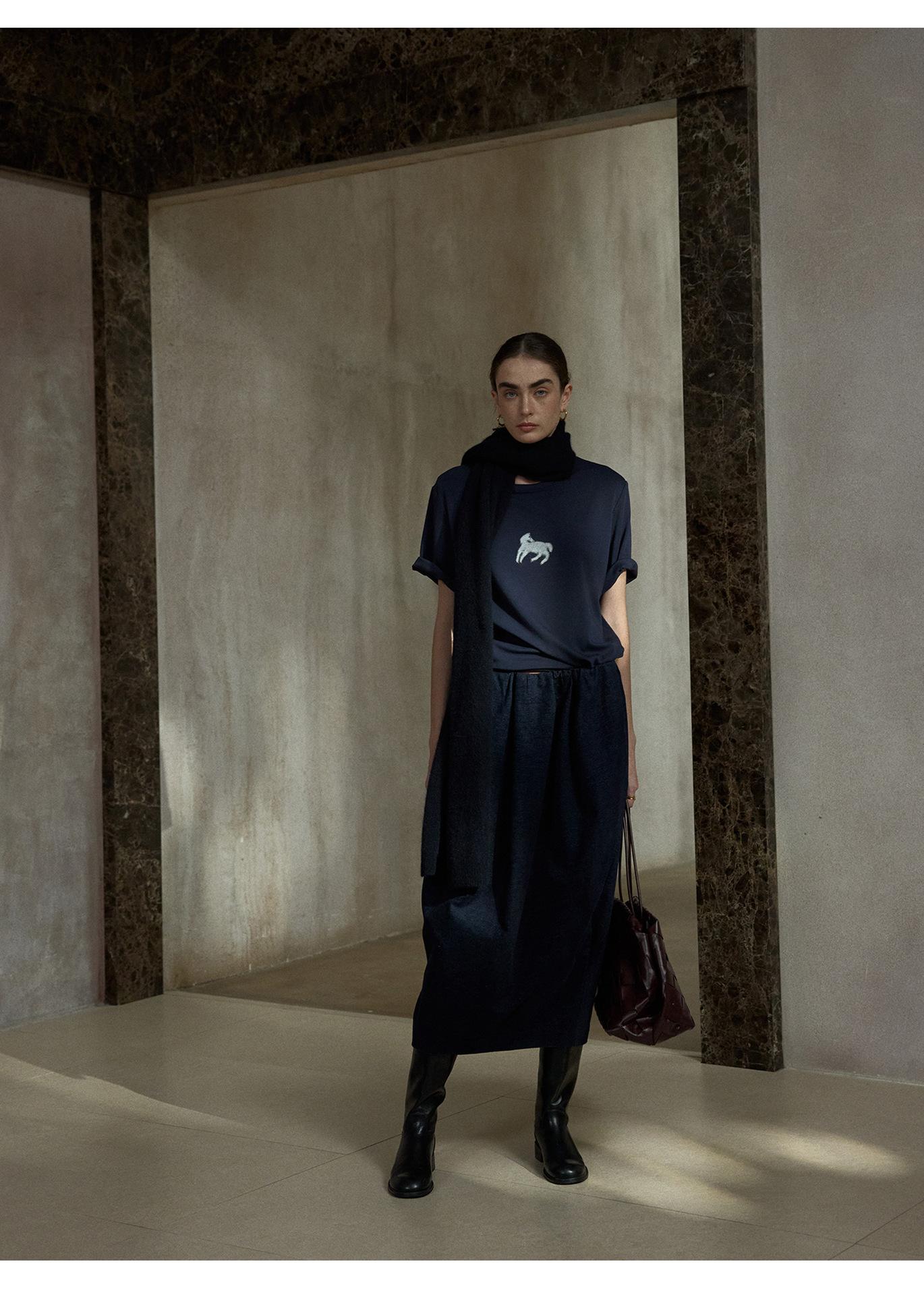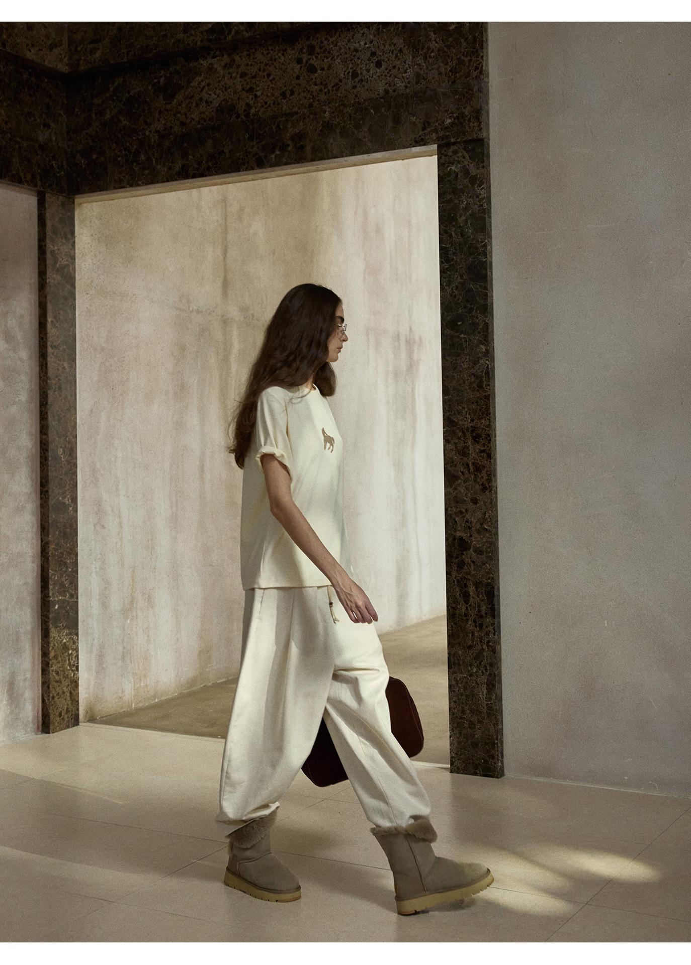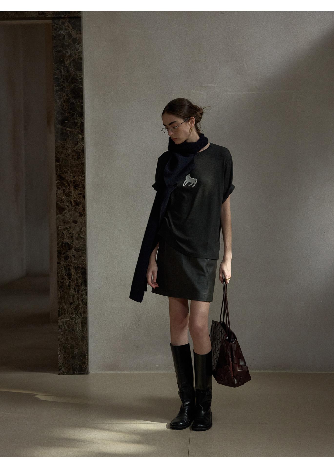 【COLNE】早春新款設計感小馬刺繡羊毛莫代爾毛氈繡T恤女