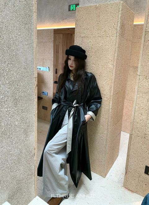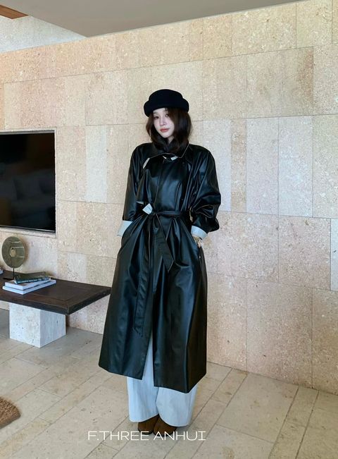 【F.THREE三姐妹】時髦復古酷颯pu皮高級感收腰顯瘦風衣(配腰帶) 16230a