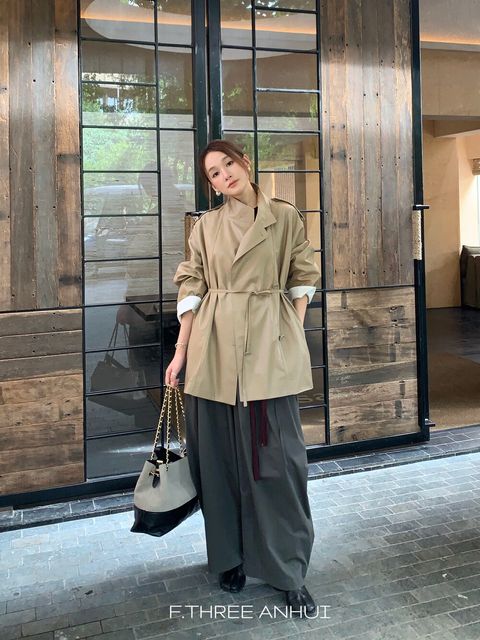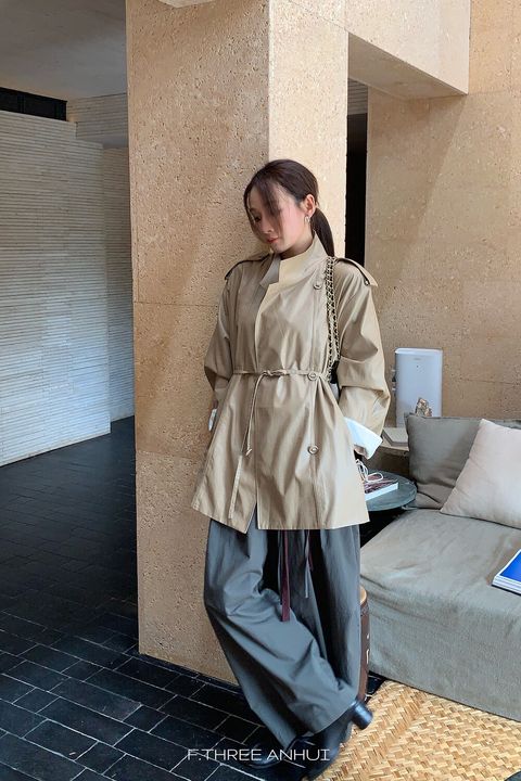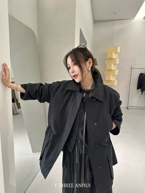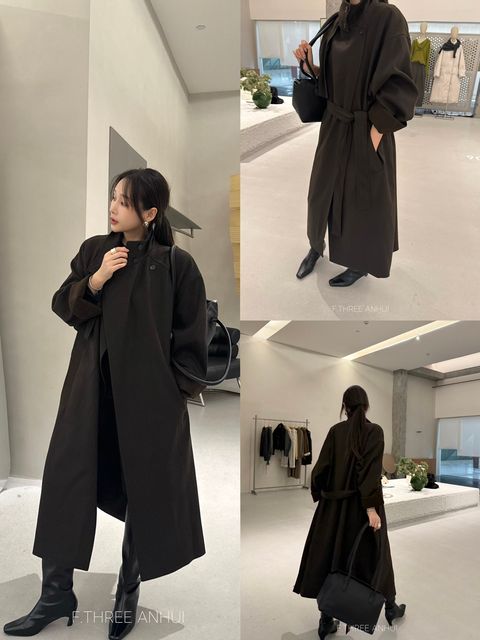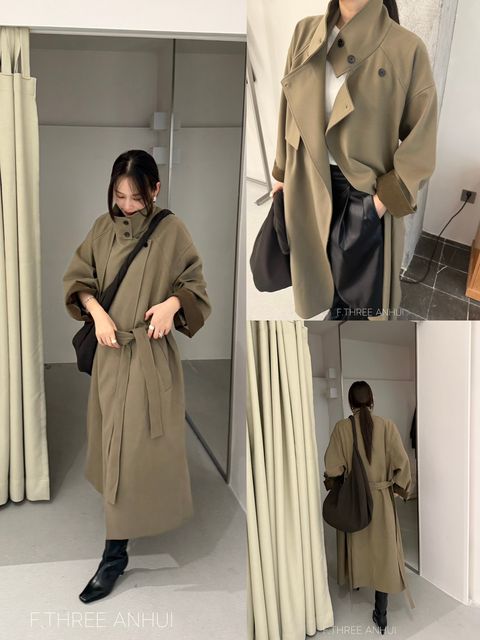 【F.THREE三姐妹】極簡老錢風廓形中長款夾棉風衣 96026