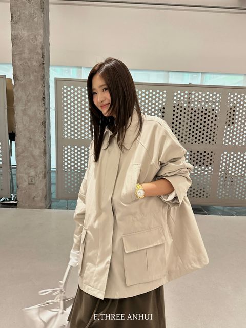 【F.THREE三姐妹】工裝風衣寬鬆立體口袋抽繩休閒短外套 98069