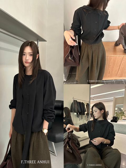 【F.THREE三姐妹】百搭通勤小眾法式打結氣質襯衫 96018
