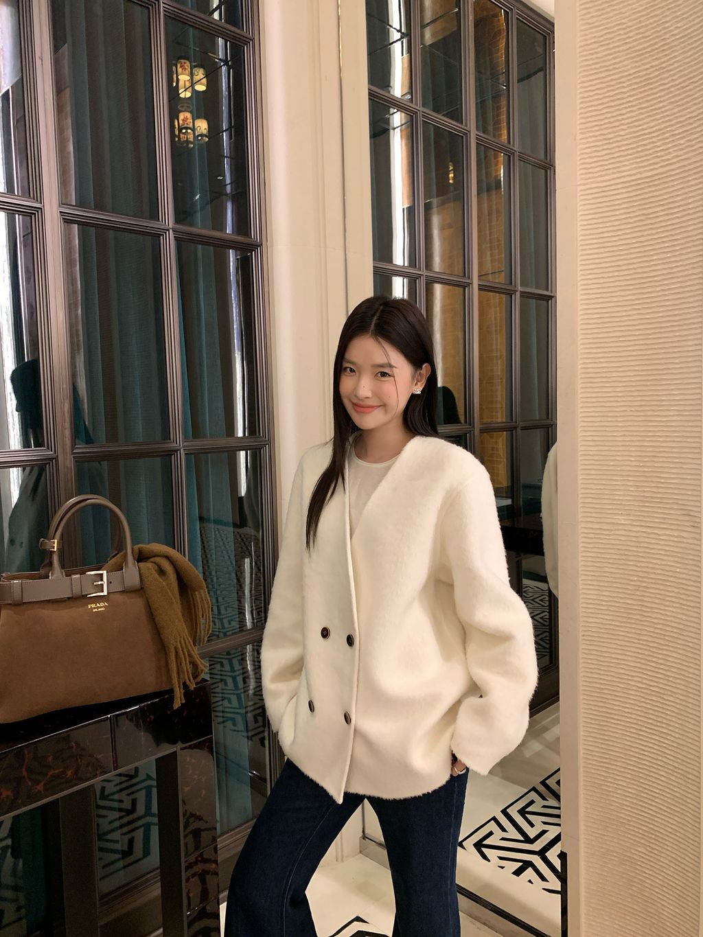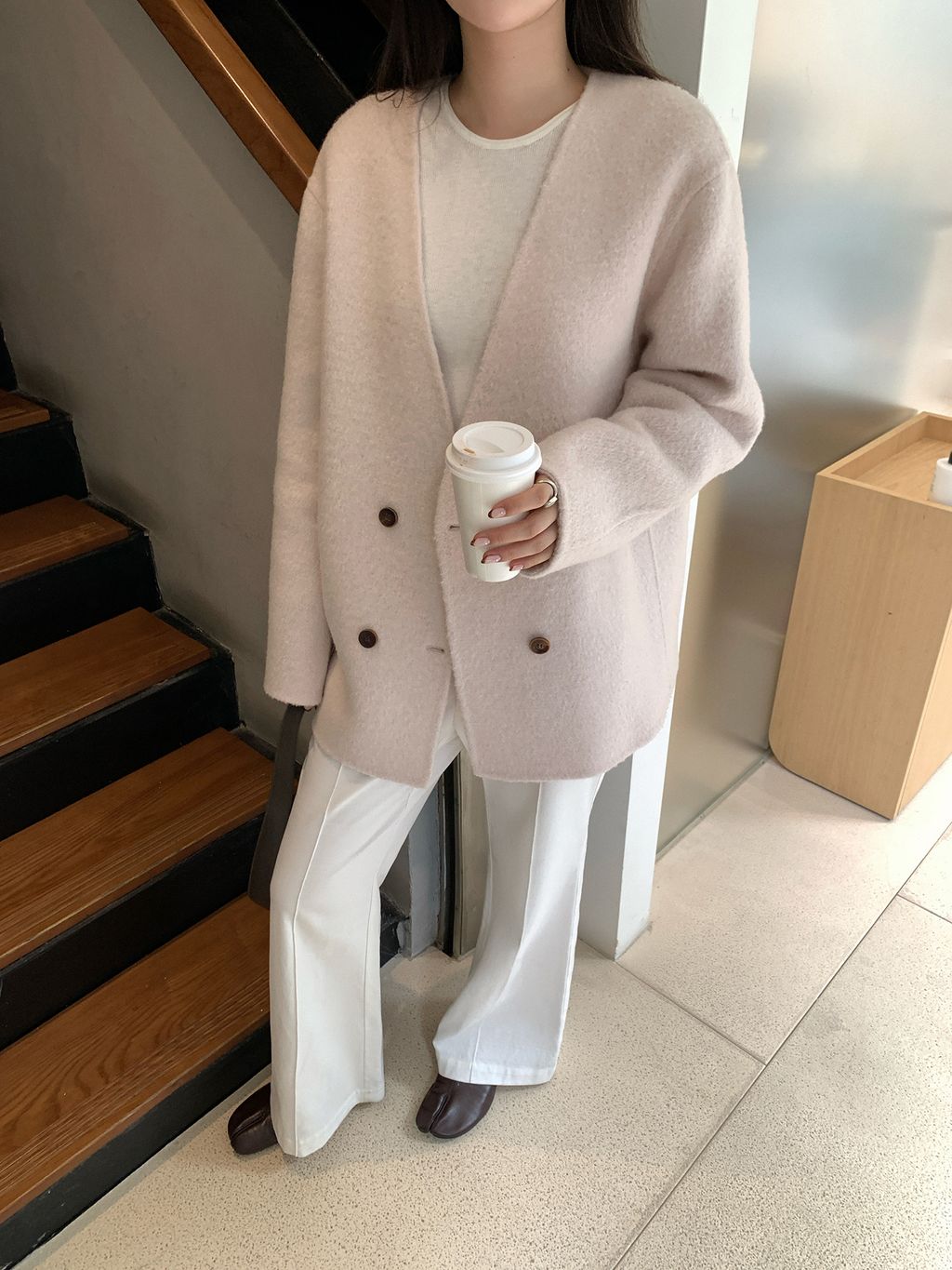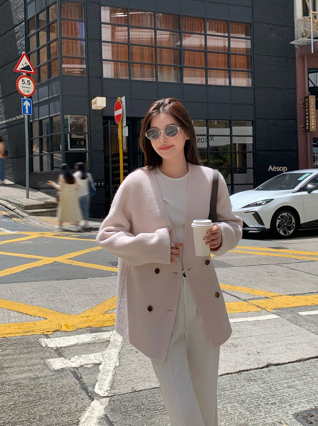 【DTETOLIE】溫柔v領蘇麗雙面毛呢羊毛外套(含90%羊毛) S7766W